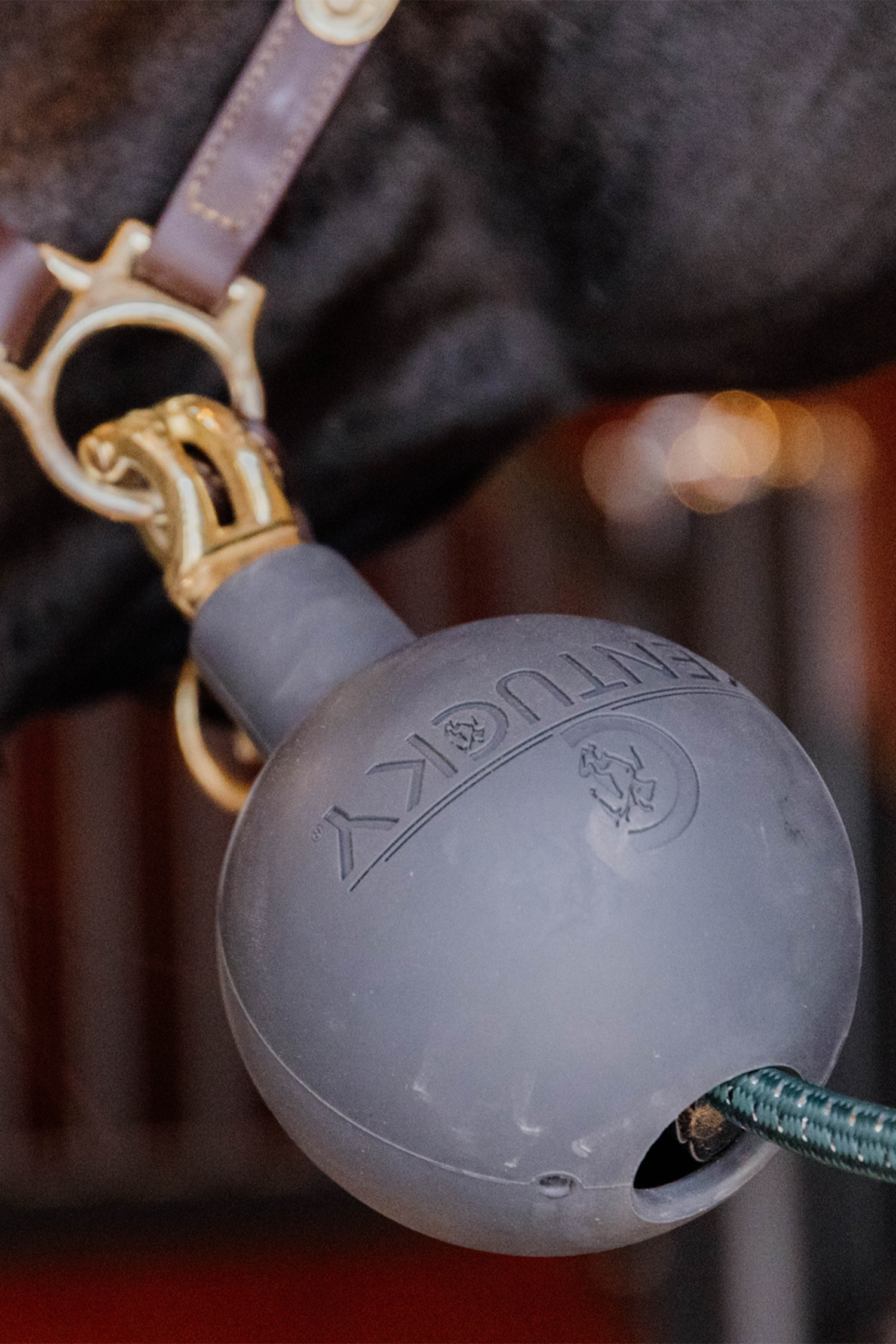 Eine praktische und effektive Lösung, um zu verhindern, dass sich das Pferd verletzt, sich in den Anbindern verheddert oder am Führstrick kaut. Die Öffnung passt gut um den Führstrick, damit er nicht verrutscht. Der Gummiball ist ein geräuschloser Schutz, der verhindert, dass der Führstrick gegen die Wand schlägt, und schützt die Wand vor Kratzern und Stößen.
