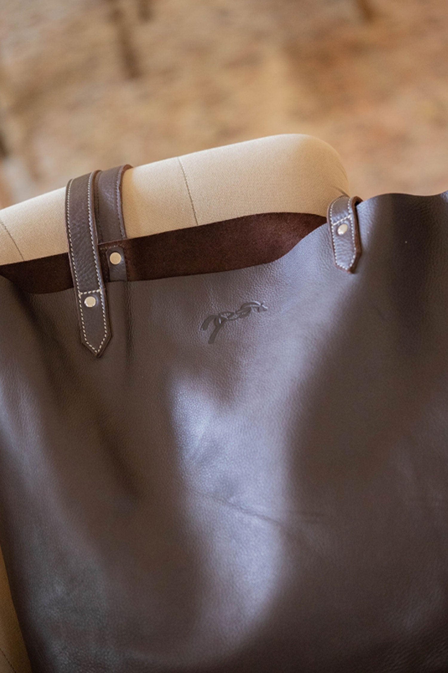 Sie ist mit zwei großen Ledergriffen und einer Innentasche ausgestattet. Das Penelope-Logo ist zwischen den beiden Griffen aufgedruckt.