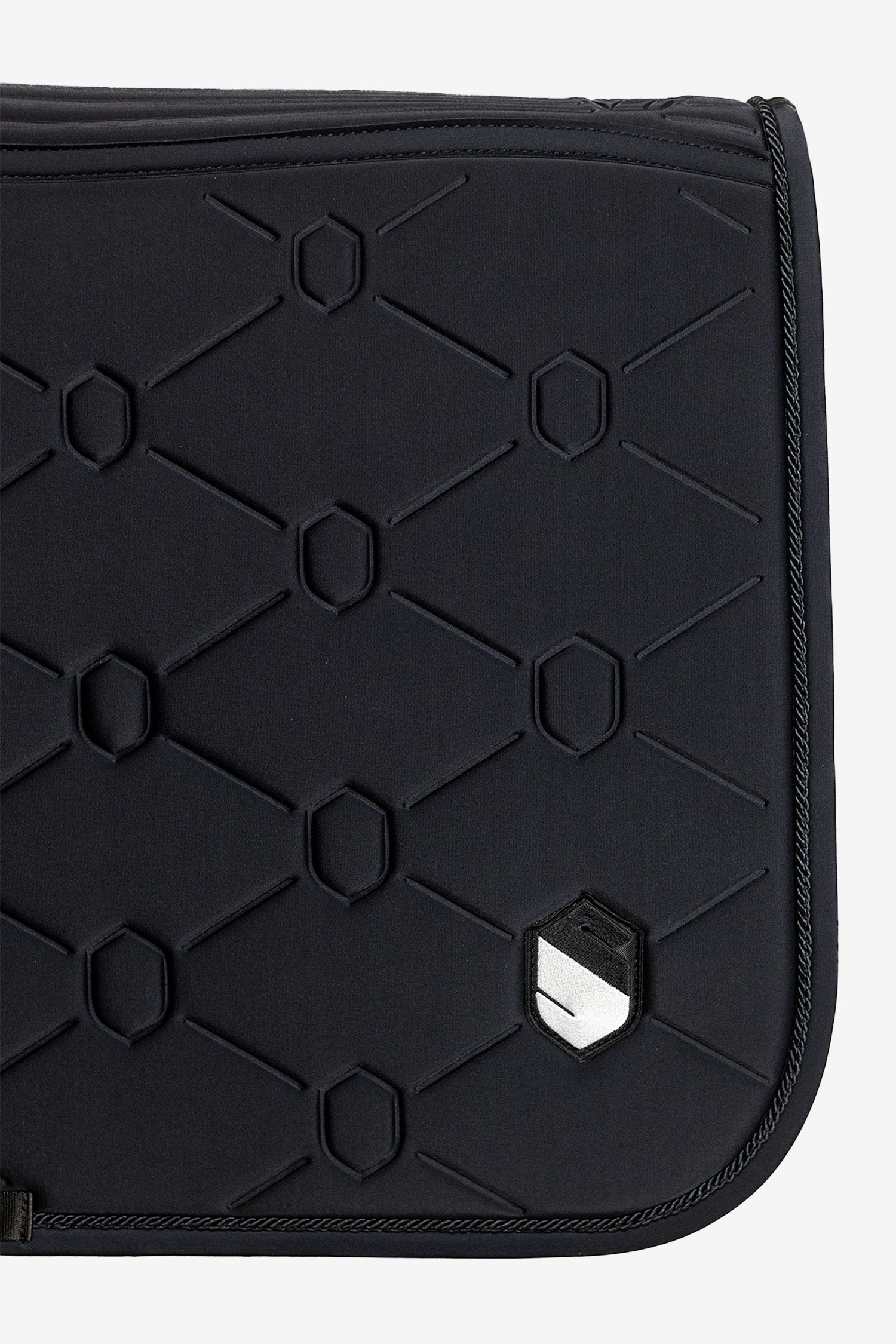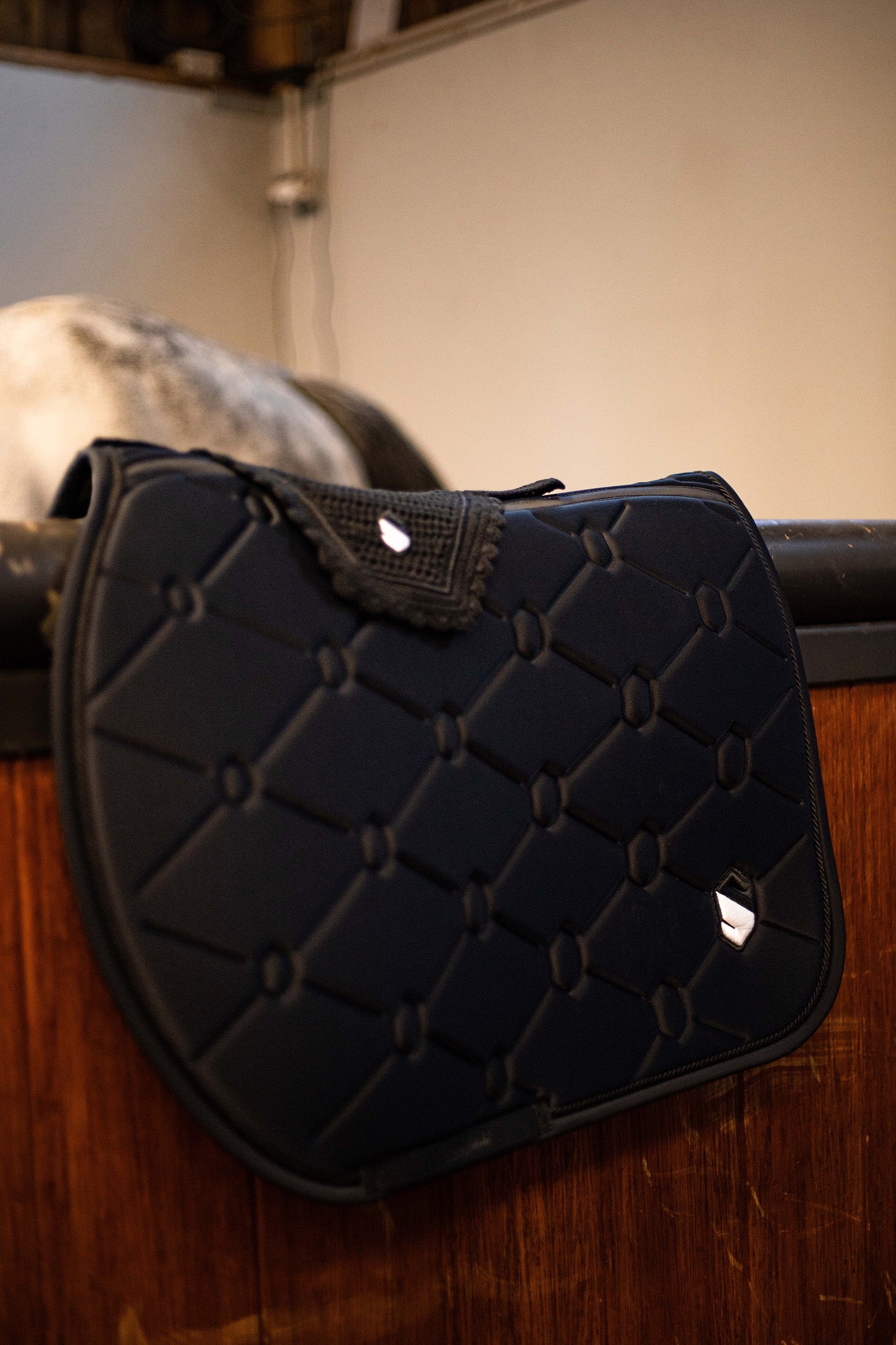 Jedes Detail von Spineshield ist sorgfältig entwickelt, um dem Pferd das bestmögliche Wohlbefinden zu bieten. Die Schabracke bietet optimalen Komfort und Stabilität, minimiert gleichzeitig den Druck entlang der Wirbelsäule und fördert einen ausgewogenen und entlastenden Kontakt unter dem Sattel.