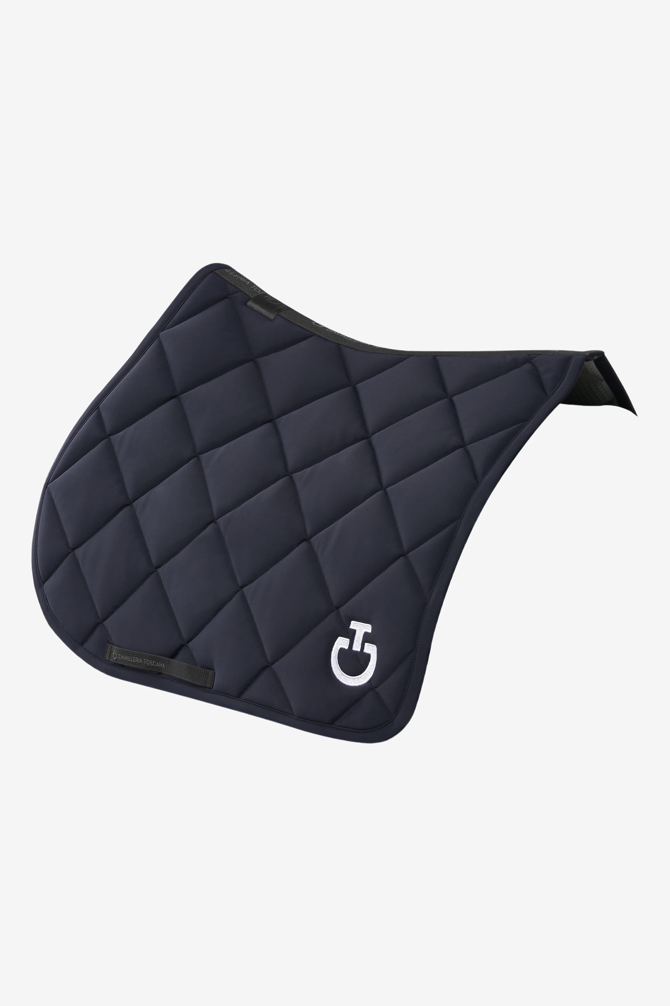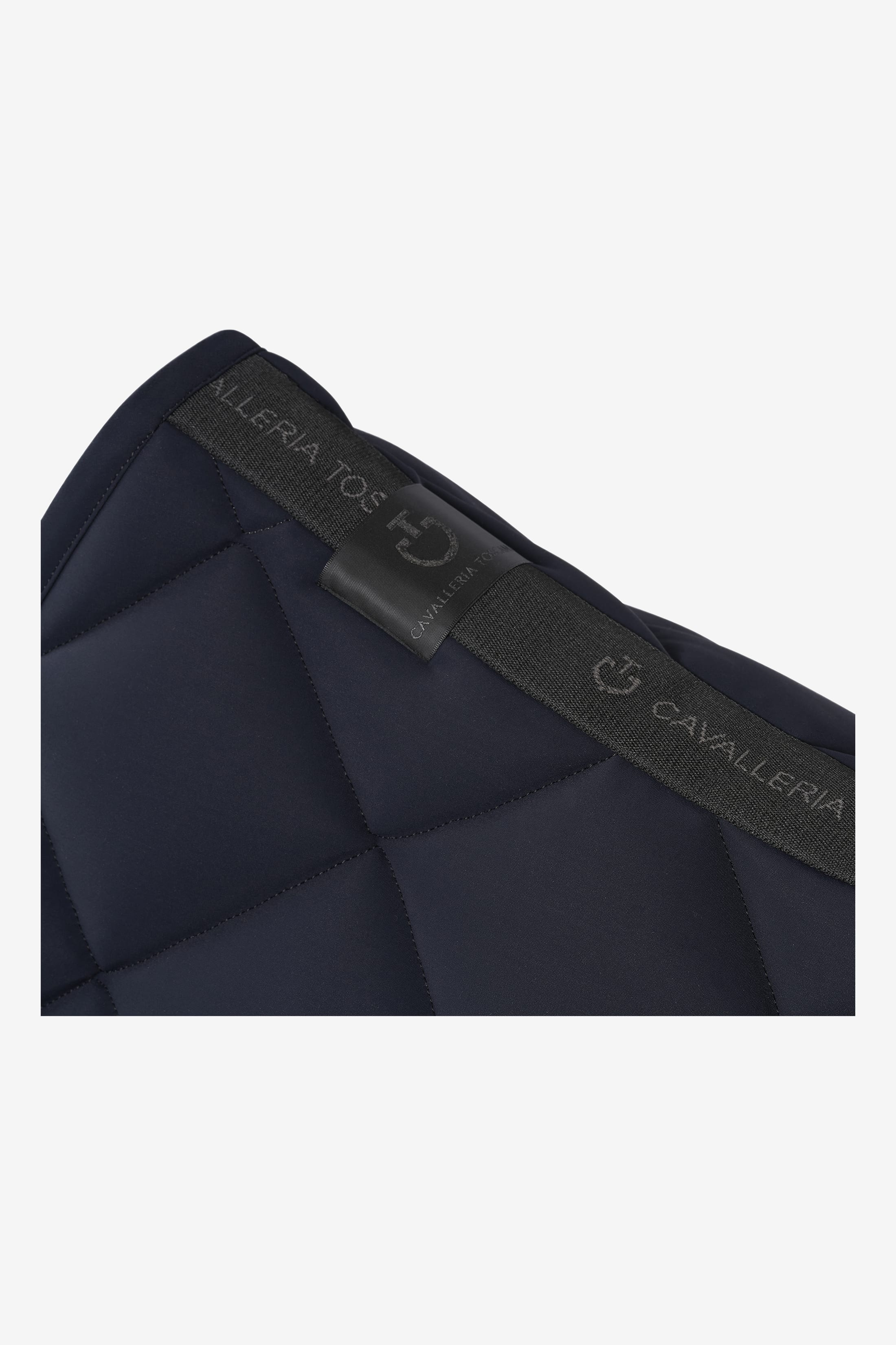 Stylish and elegant jumping saddle pad with diamond quilting. Underside of honeycomb that wicks away moisture and embroidered logo. This saddle pad is made of high-quality materials, the breathable fabric ensures proper ventilation, keeping the horse dry and comfortable. Easy to maintain, the saddle pad is machine washable and dries quickly. Ideal for daily use and competitions.