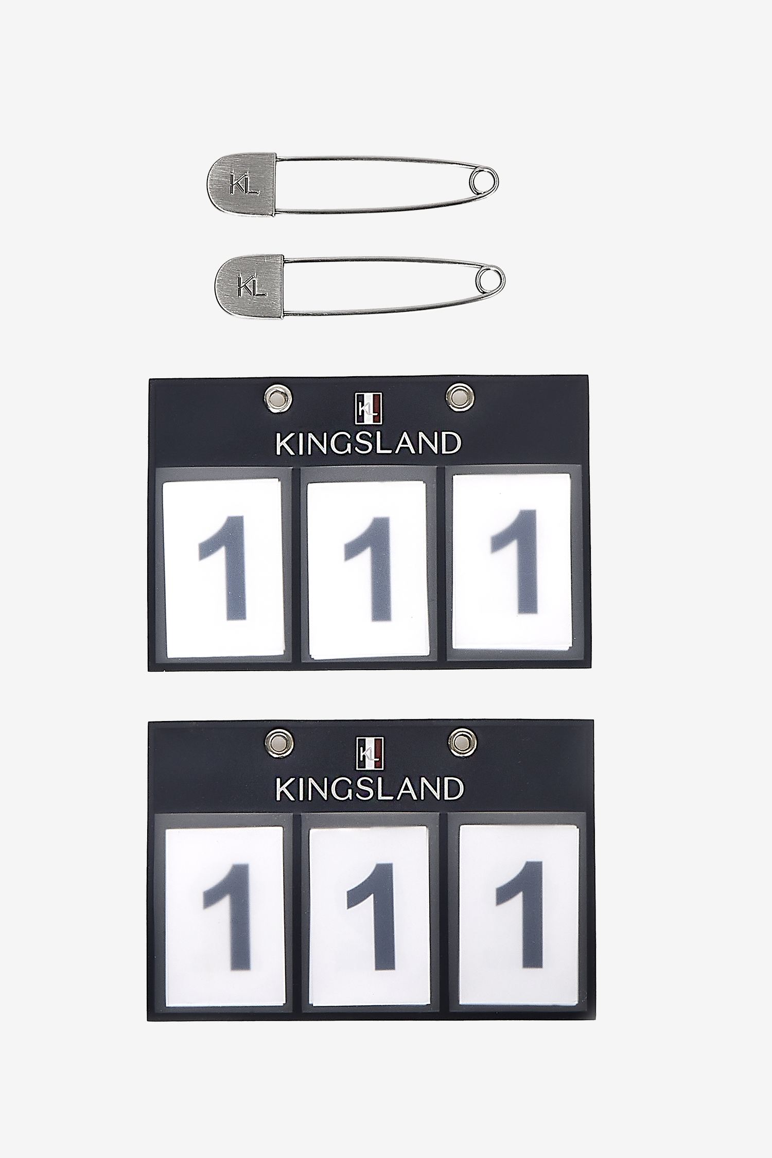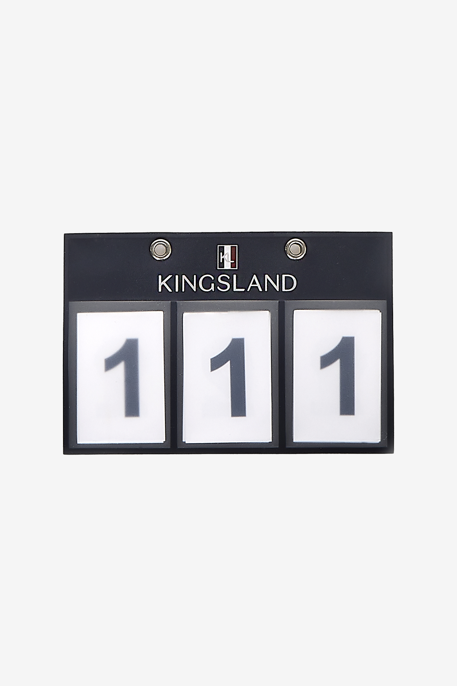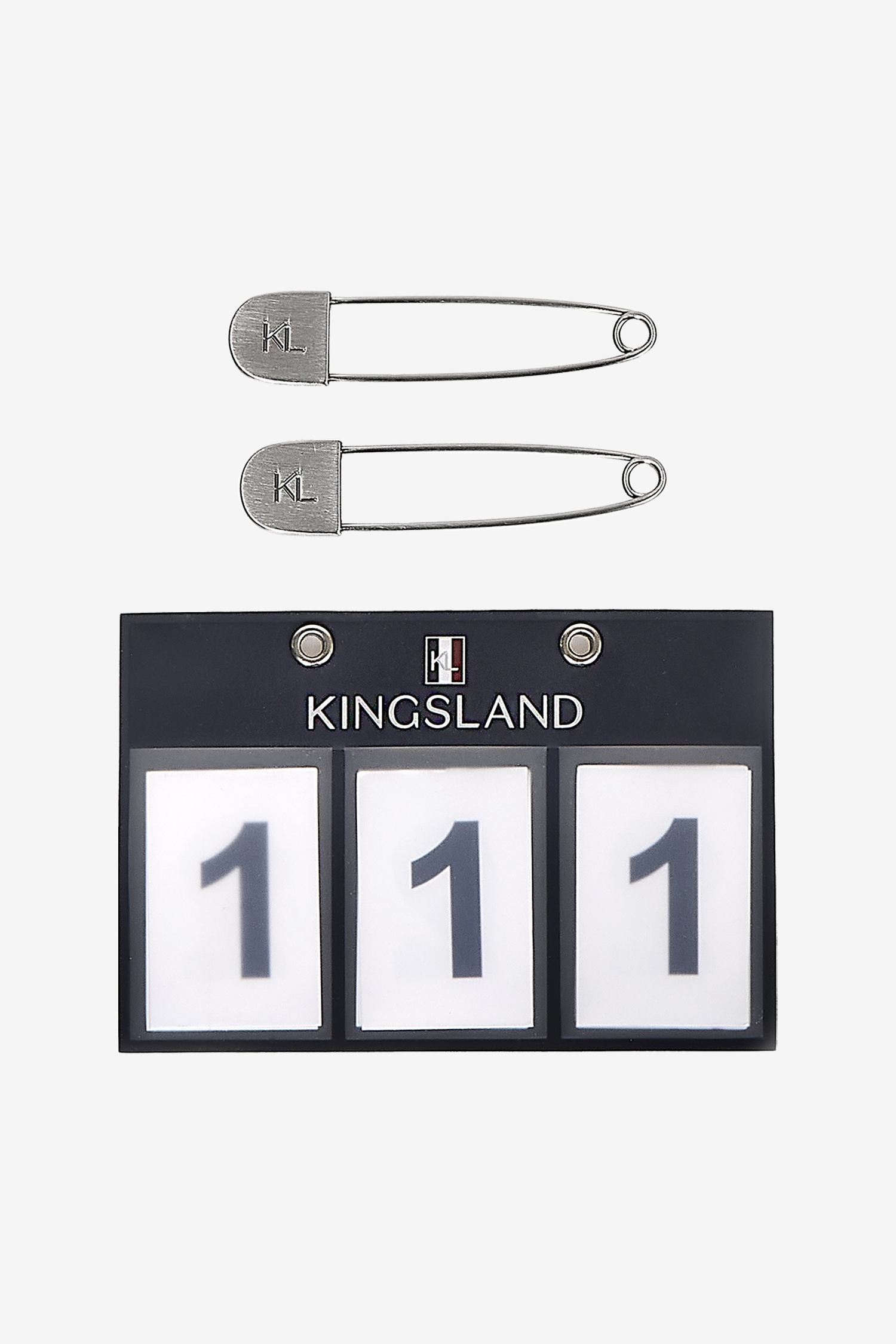 Number tag made of plastic with a compartment for 3 digits that can easily be changed as needed. Large and sturdy safety pin included for attaching the number tag to the saddle pad. Kingsland logo on the front in a contrasting color.