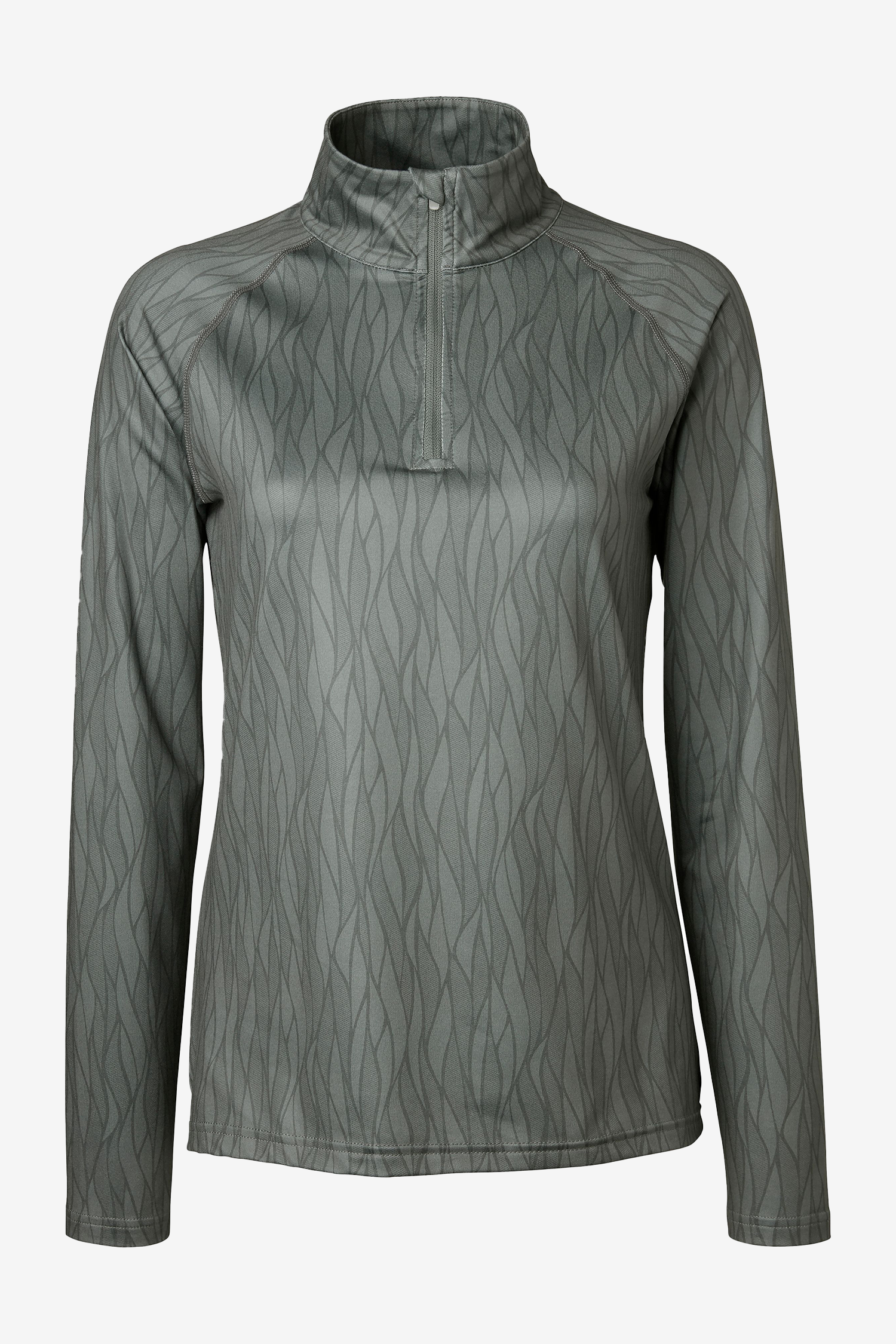 Functional top with all-over print, the fabric is full stretch with quick dry function. This makes it both incredibly comfortable and keeps you dry and cool all day, whether you ride one or several horses.