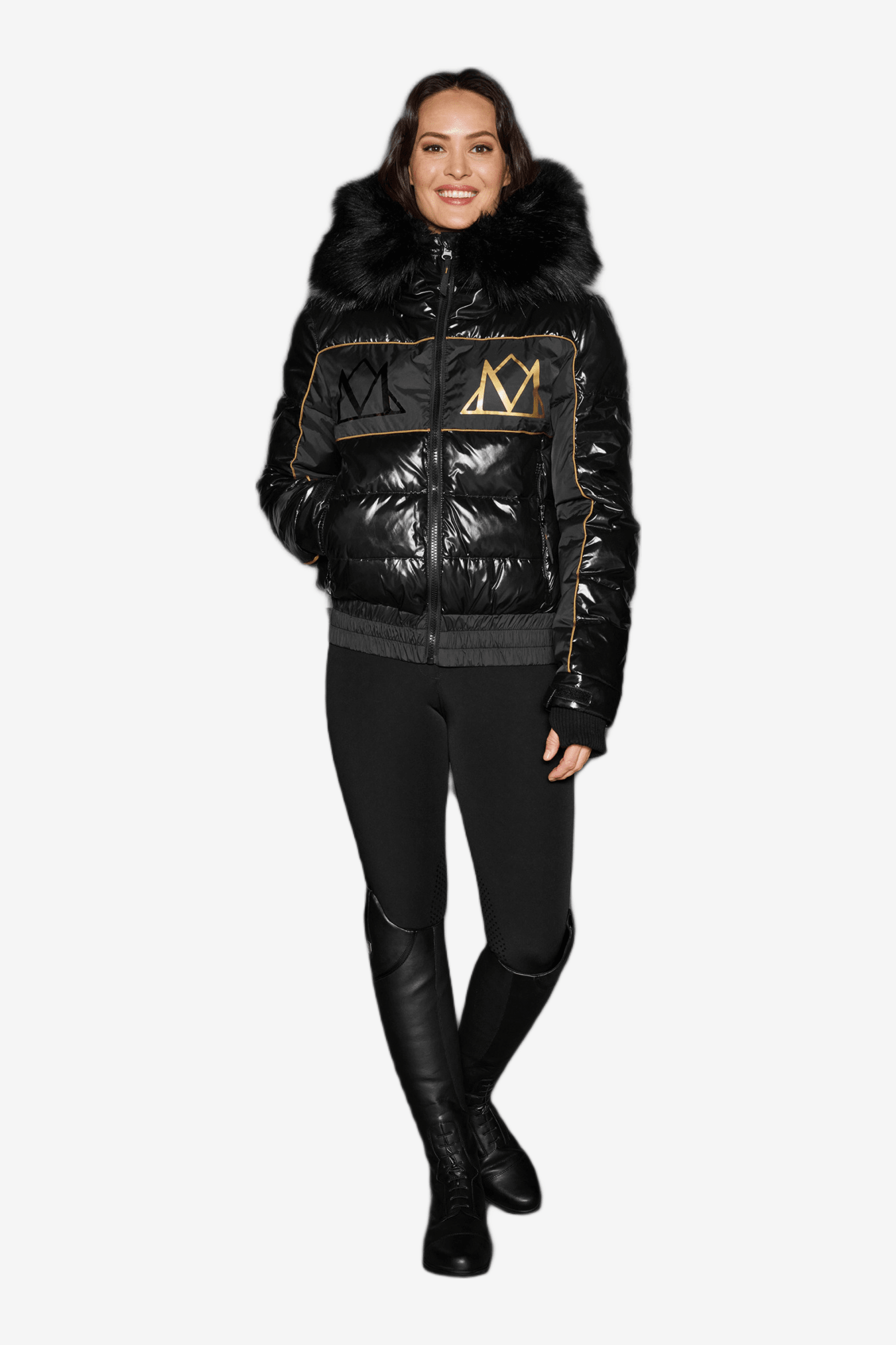 Water and wind-repellent fabric with both shiny and matte surfaces that provide stylish contrasts, along with MH's stylish logo in both black and gold.