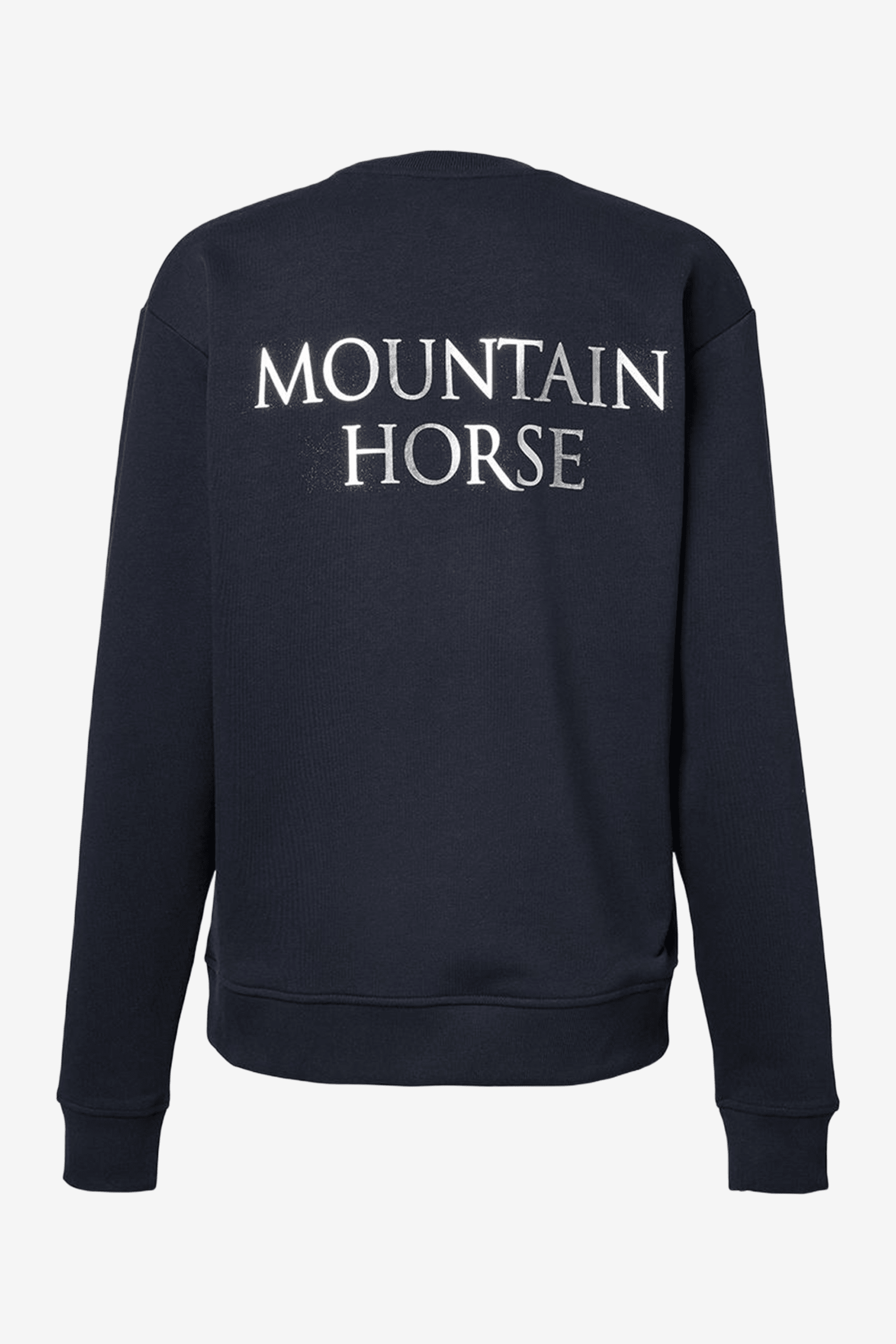 Soft and comfortable sweater from Mountain Horse. The sweater features a rounded neckline and ribbed fabric at the cuffs, hem, and neck. It is stylishly designed with the Mountain Horse logo on the front and logo print on the back.