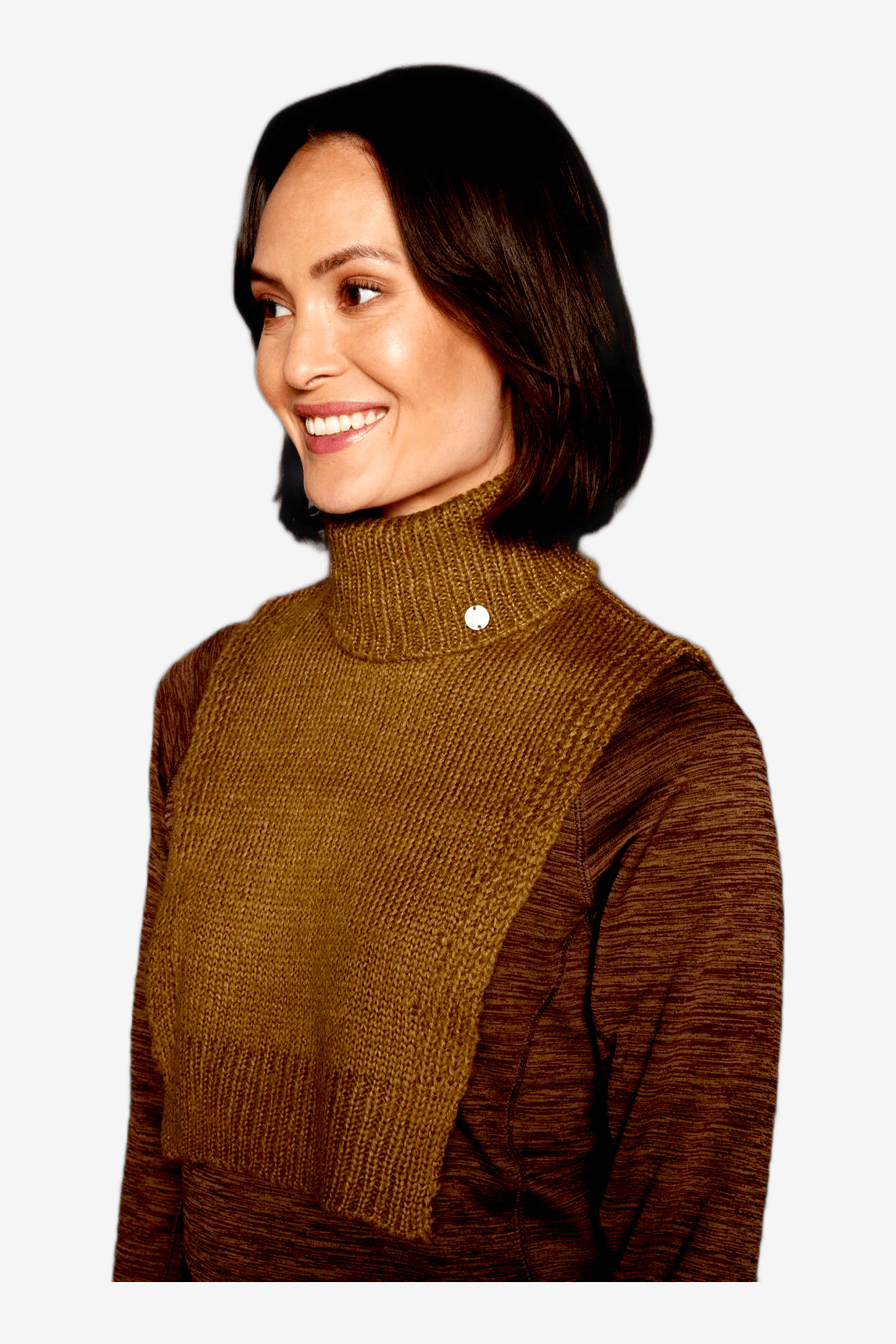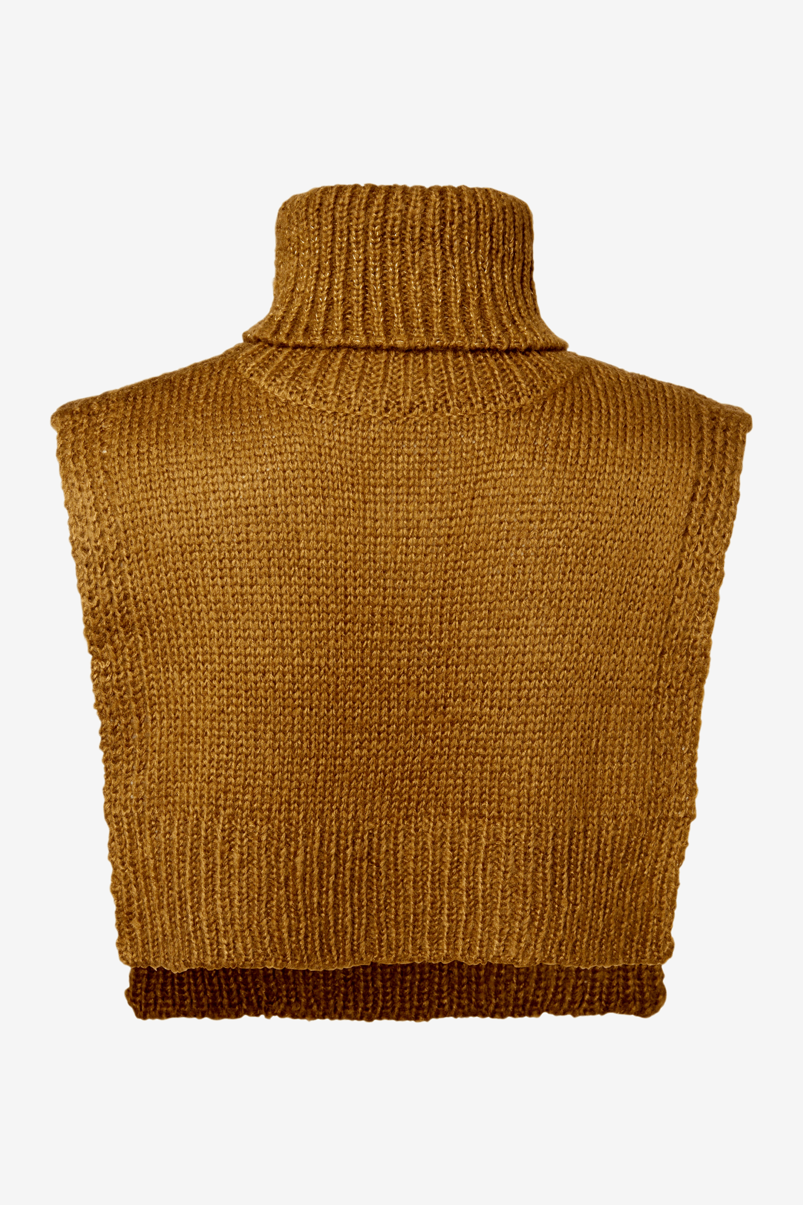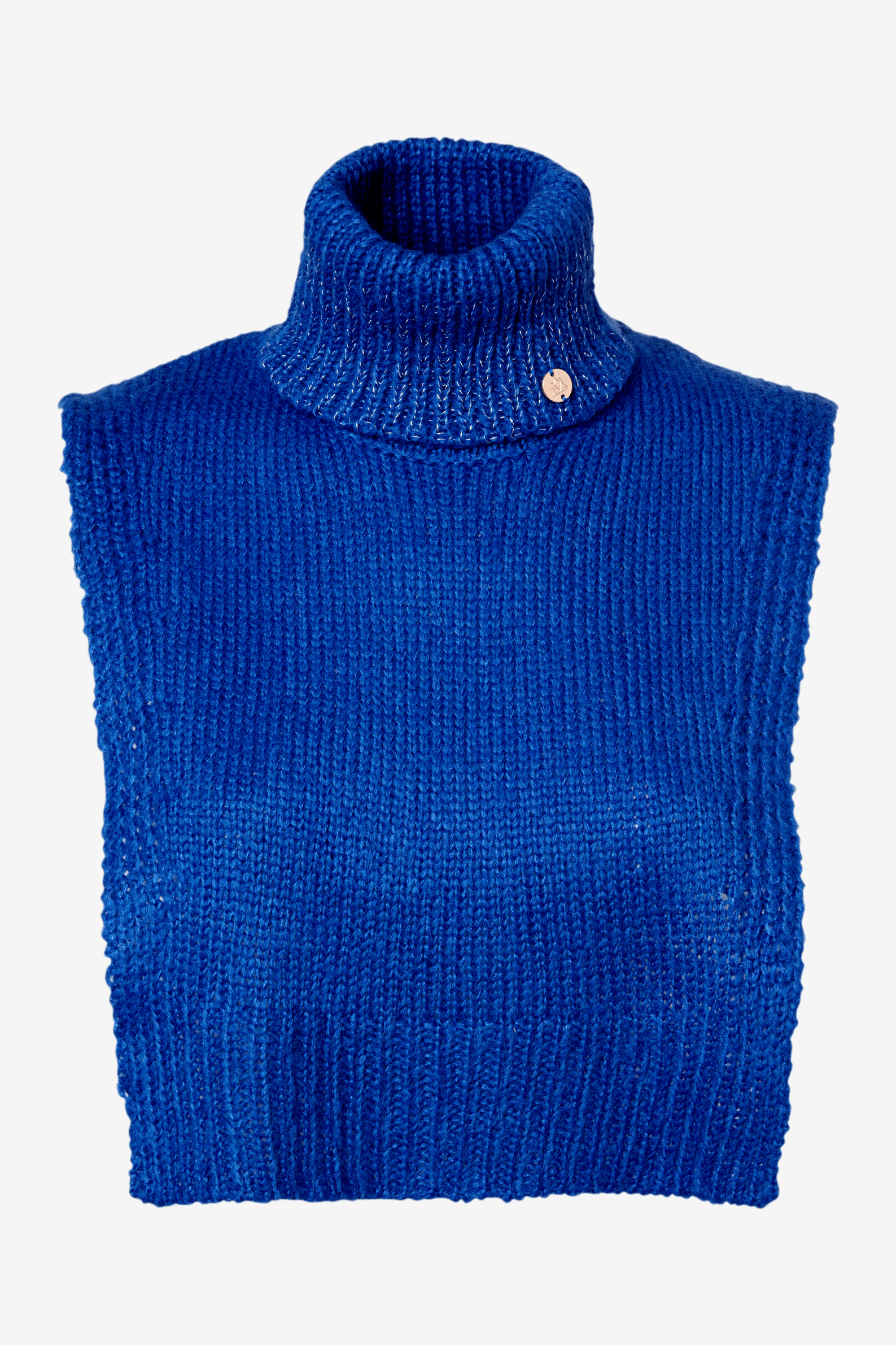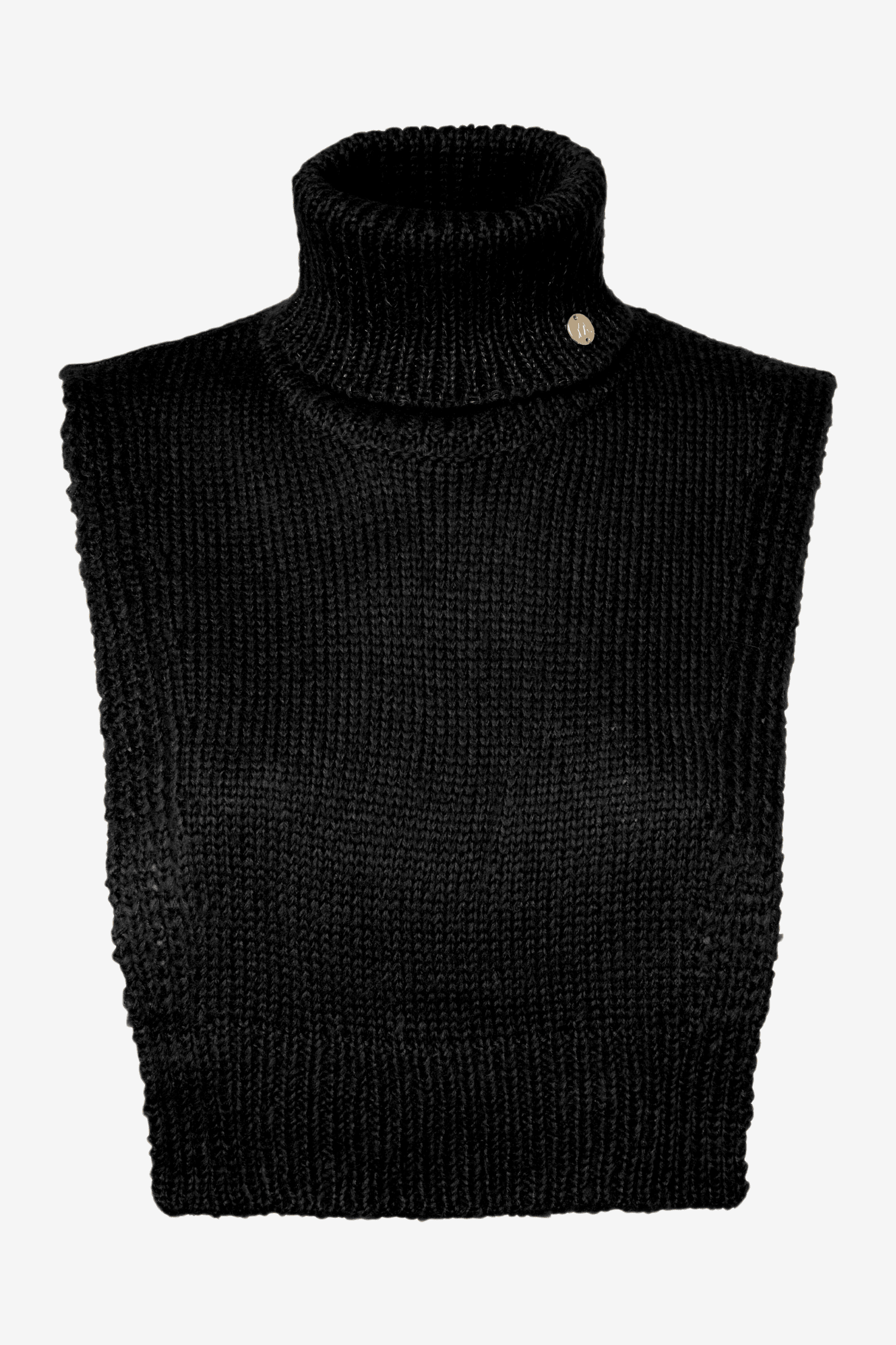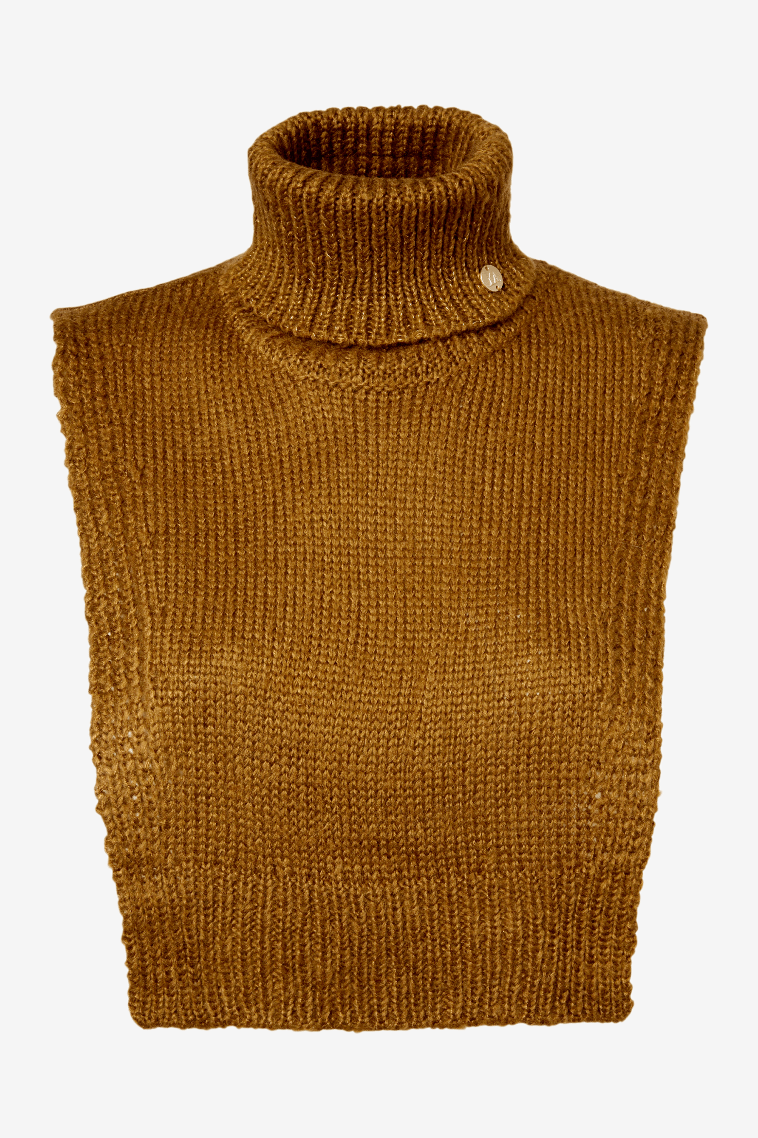 An incredibly comfortable high collar with a slightly longer front piece. Knitted in a soft and cozy yarn that warms in winter.