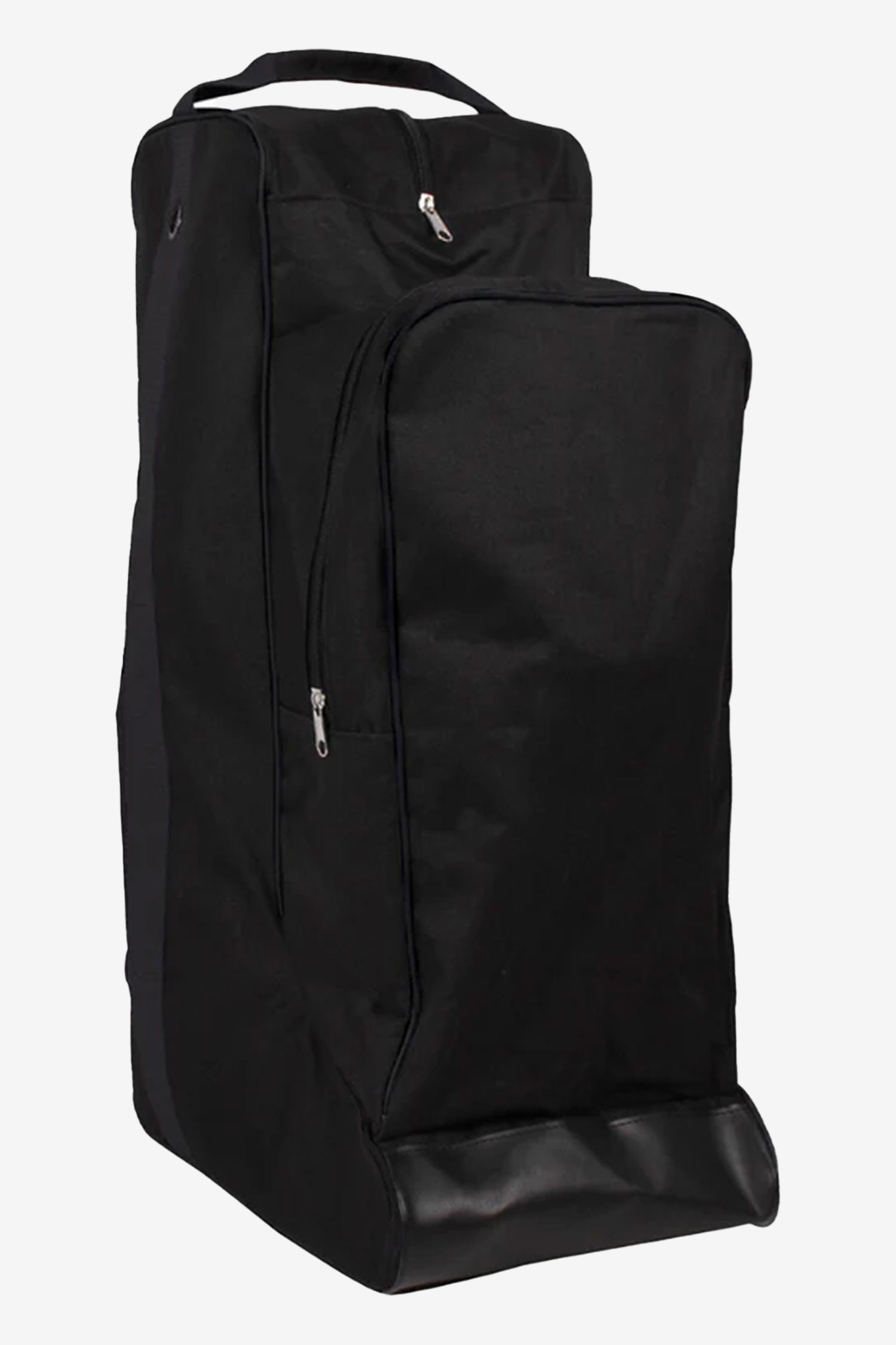 The bag features a large compartment for boots, as well as a front pocket for your helmet or for storing small items such as gloves, spurs, or shoe polish. Whip holder on one side.