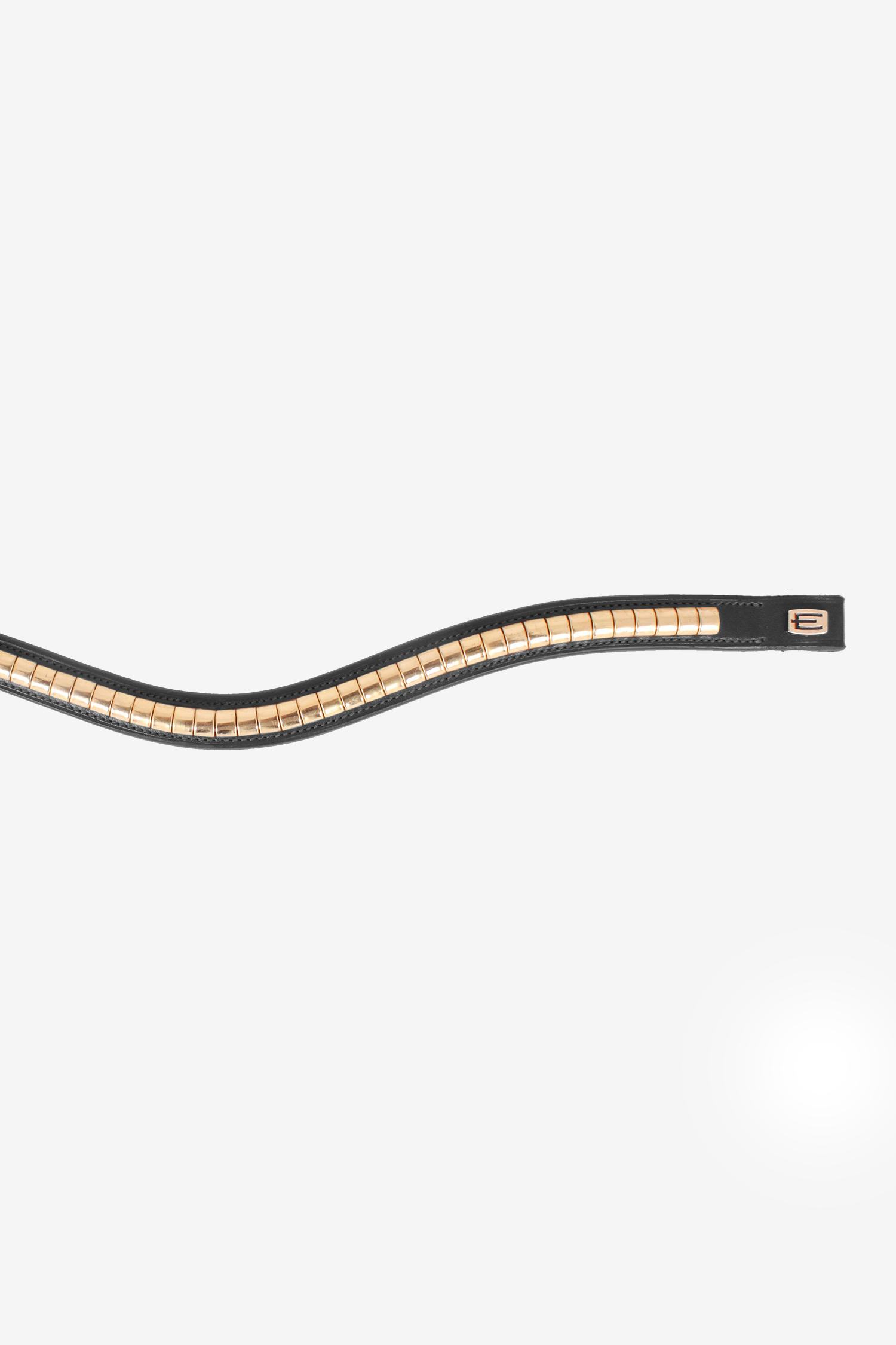Elegant curved browband with large studs made from exclusive Italian leather. The browband features a luxurious E-logo in brass on both sides.