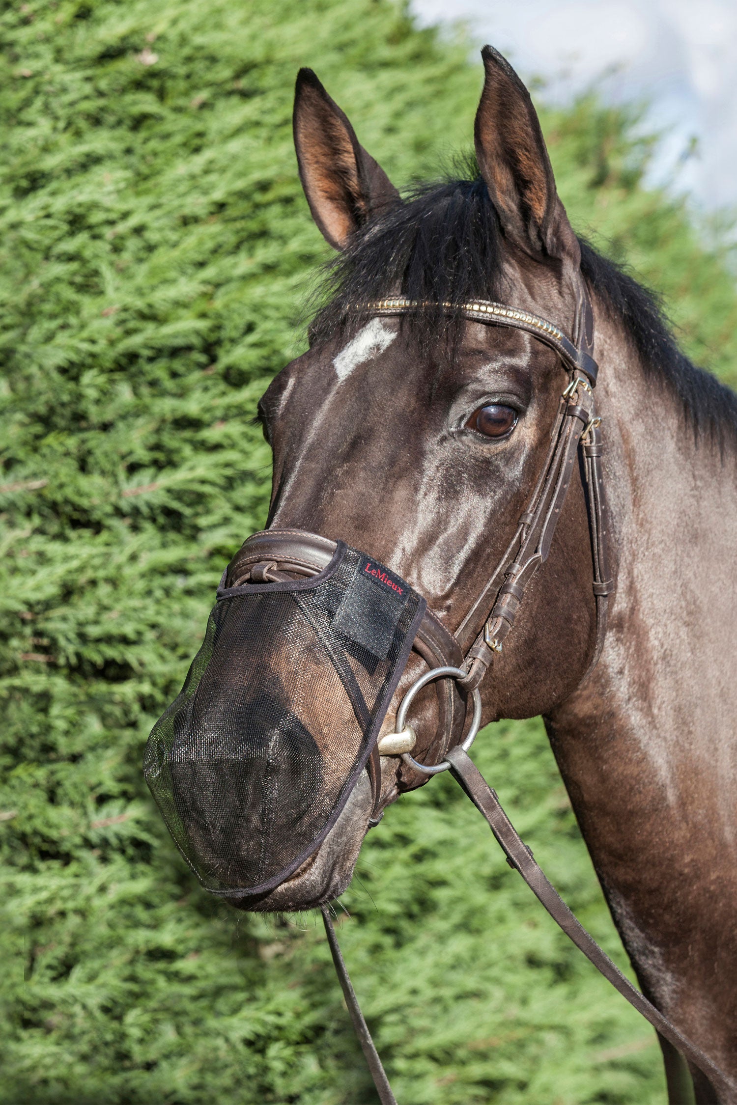Helps the horse against head shaking and annoying insects or strong sunlight. Perfect for the very sensitive horse that has some difficulty staying focused during, for example, training and competition.