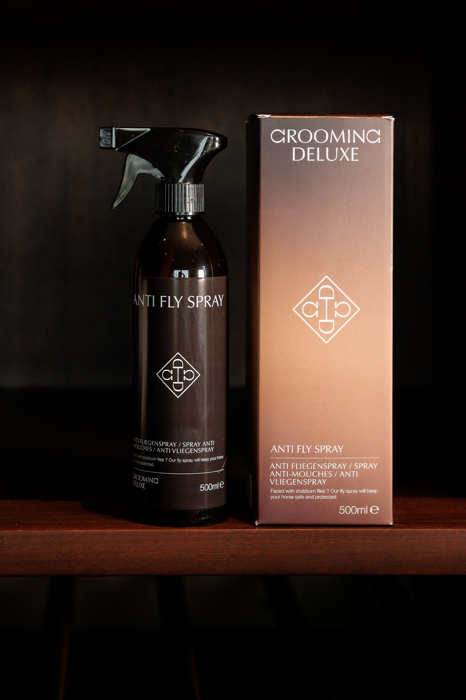 For animal use. Hold the bottle 20–30 cm from the horse's skin and spray evenly over the body. Avoid eyes and mucous membranes.