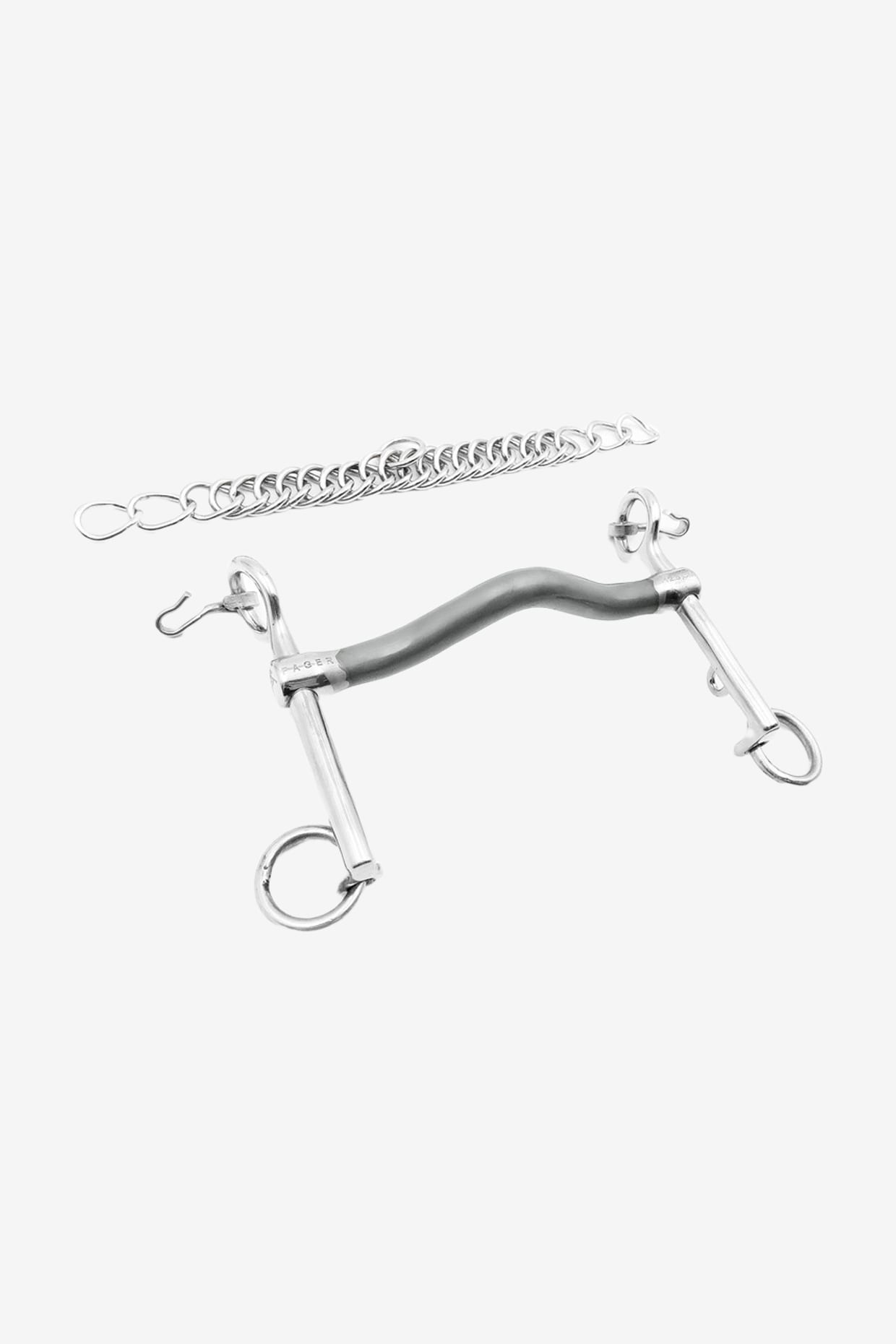 When the chain engages upon rein contact, Sebastian's arch/tongue relief transfers and applies pressure against the tongue and lifts the pressure off the bars. This is because the bars should not have such a large load when the chain presses the bit against the bars and the tongue is left completely free. There the tongue must take over the force. With Sebastian, we remove the constant pressure against the tongue but maintain clarity in contact.