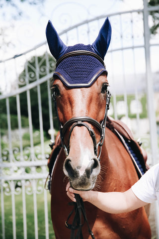 An ear bonnet for horses, also known as an ear net or fly bonnet for riding, is a popular accessory that protects the horse's ears from insects, drafts, and dirt. At the same time, it is a stylish detail that is often matched with saddle pads and other equipment – both for everyday use and competitions. Ear bonnets are available in many colors, sizes, and styles – from classic solid colors to trendy glittery designs.