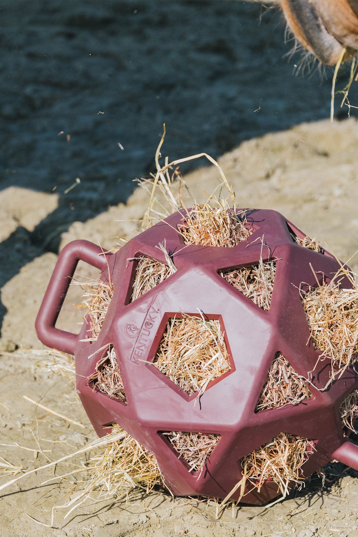 This ball can be used just as well in the stable as during transport or out in the pasture. Make the horse eat slower and avoid boredom. Made of strong rubber that withstands a lot.