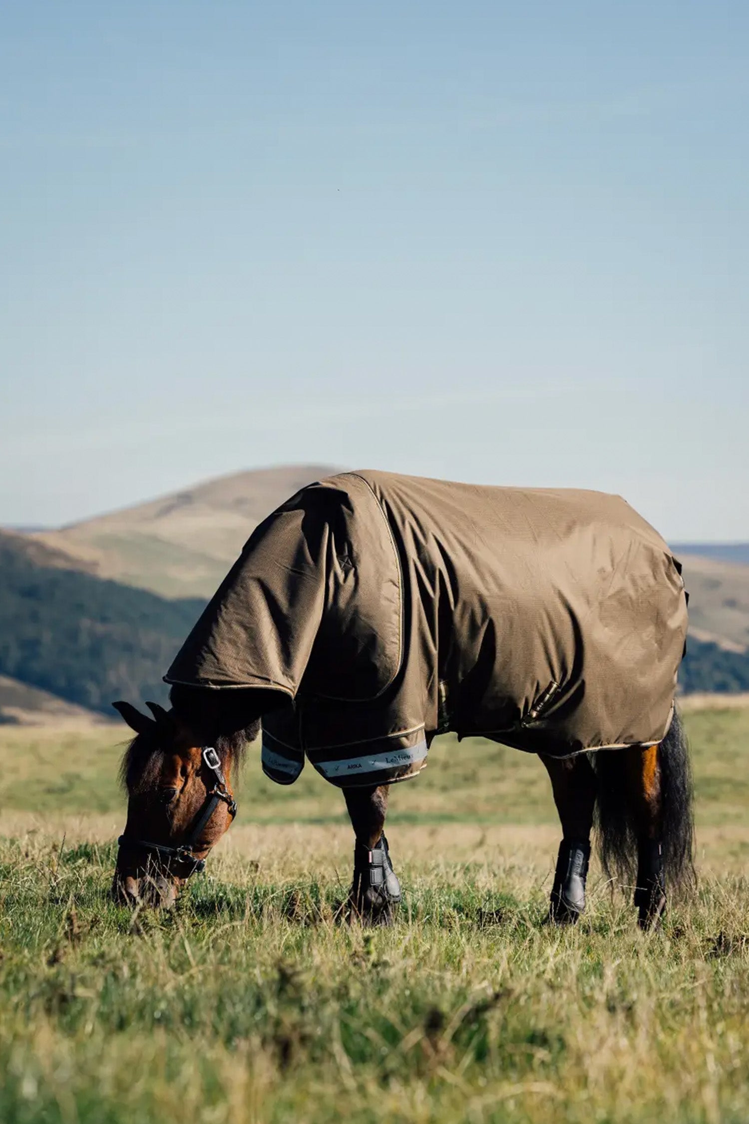 Thoughtful details make the rug extra practical for everyday use: reflective sections make the horse easier to see in the dark, a PVC-coated tail strap is easy to wipe clean, cross surcingles and elastic leg straps keep the rug securely in place. The removable neck provides flexible protection depending on the weather, and attachments for Arika liners at the neck and back make it easy to build a versatile layering system all year round.