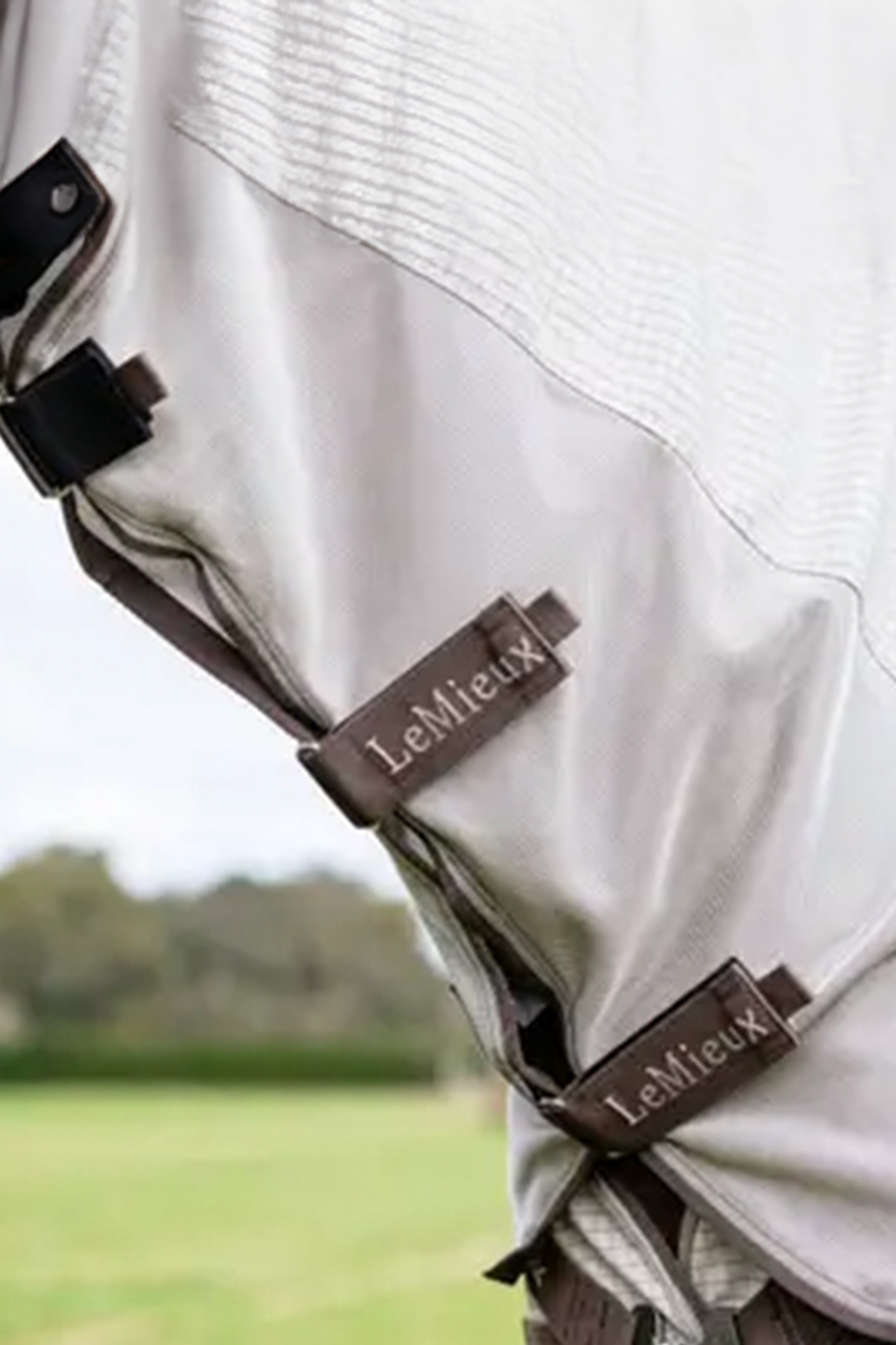 The lower part consists of a breathable micro-mesh material that effectively protects against flies and insects while maintaining optimal airflow. The combination of materials keeps the horse cool, dry, and comfortable even in changing weather conditions.