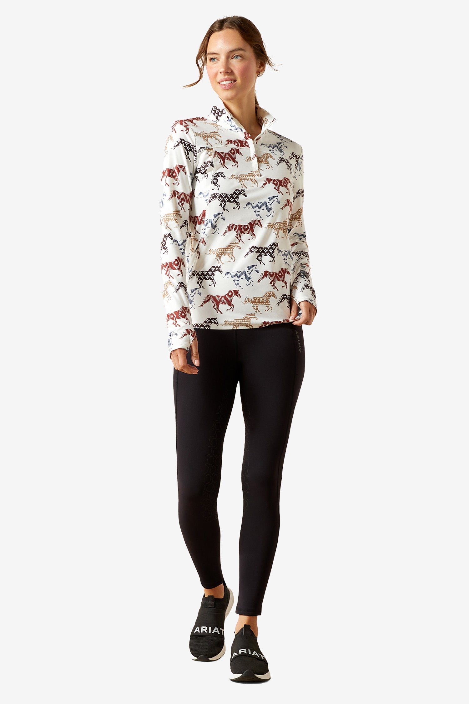 Shaped at the waist for a feminine fit and made from brushed stretch jersey, it is both comfortable and stylish. Perfect as a base layer close to the body, as it is part of the “Cold Series” technology that keeps the body warm and wicks moisture away. Thumbholes in the cuffs at the sleeve ends keep the cold out.
