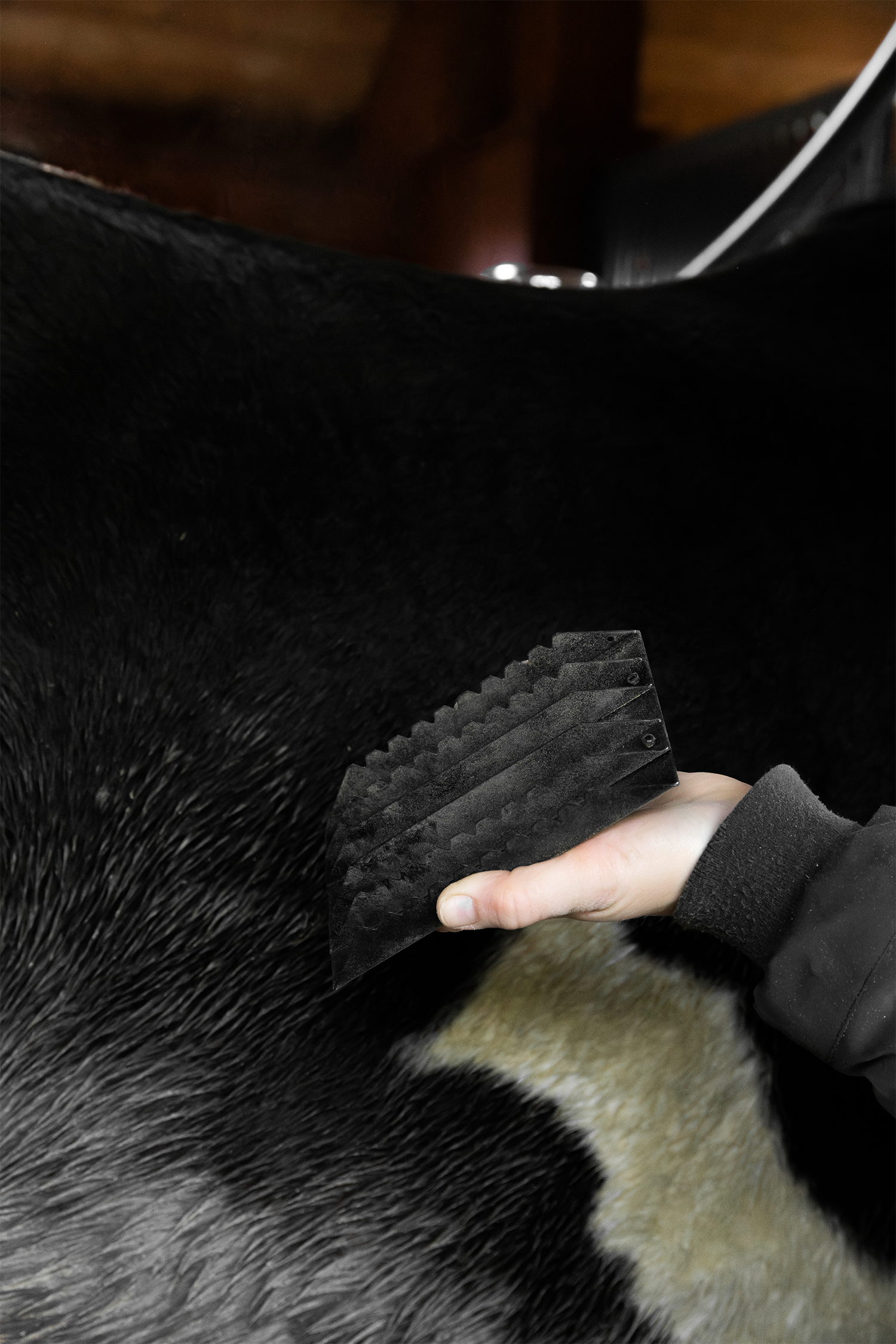 Made of high-quality, rust-resistant steel and built to last and maintain its efficiency over time. The metal teeth are durable and designed to be gentle on the horse's skin, providing a deep clean without irritation.