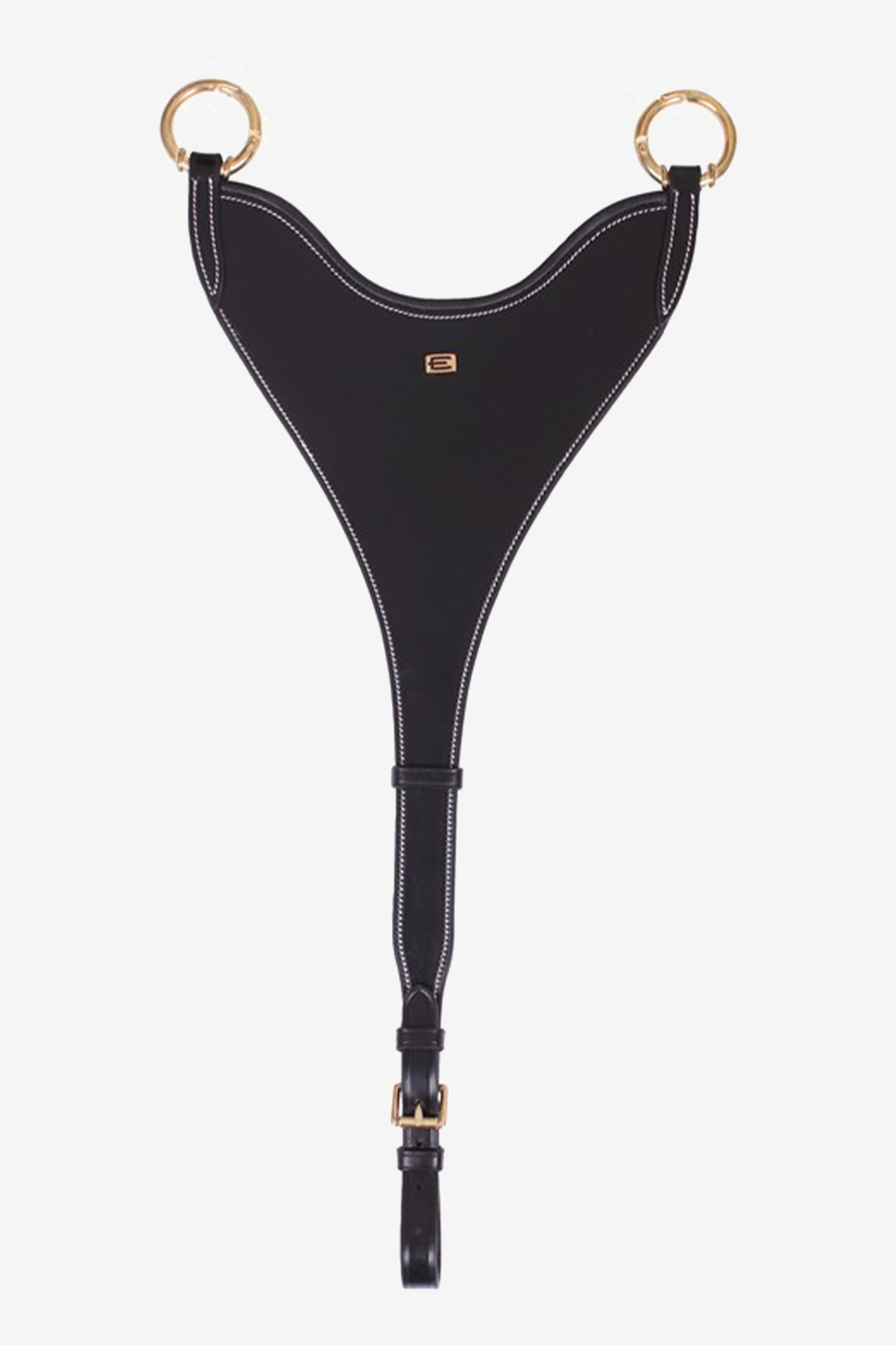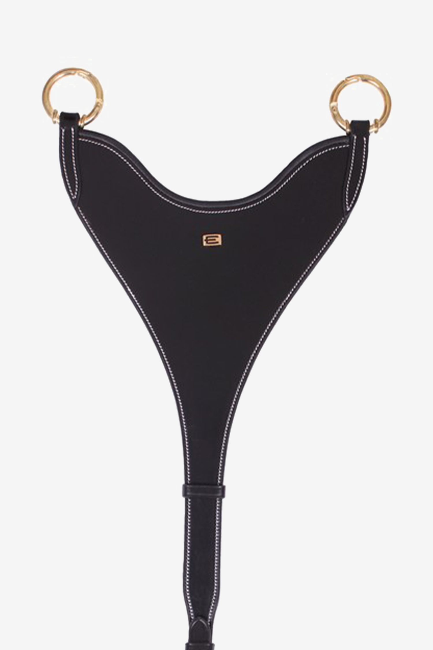 Short martingale BIB that is adjustable, made of exclusive Italian leather with white stitching and brass buckles.