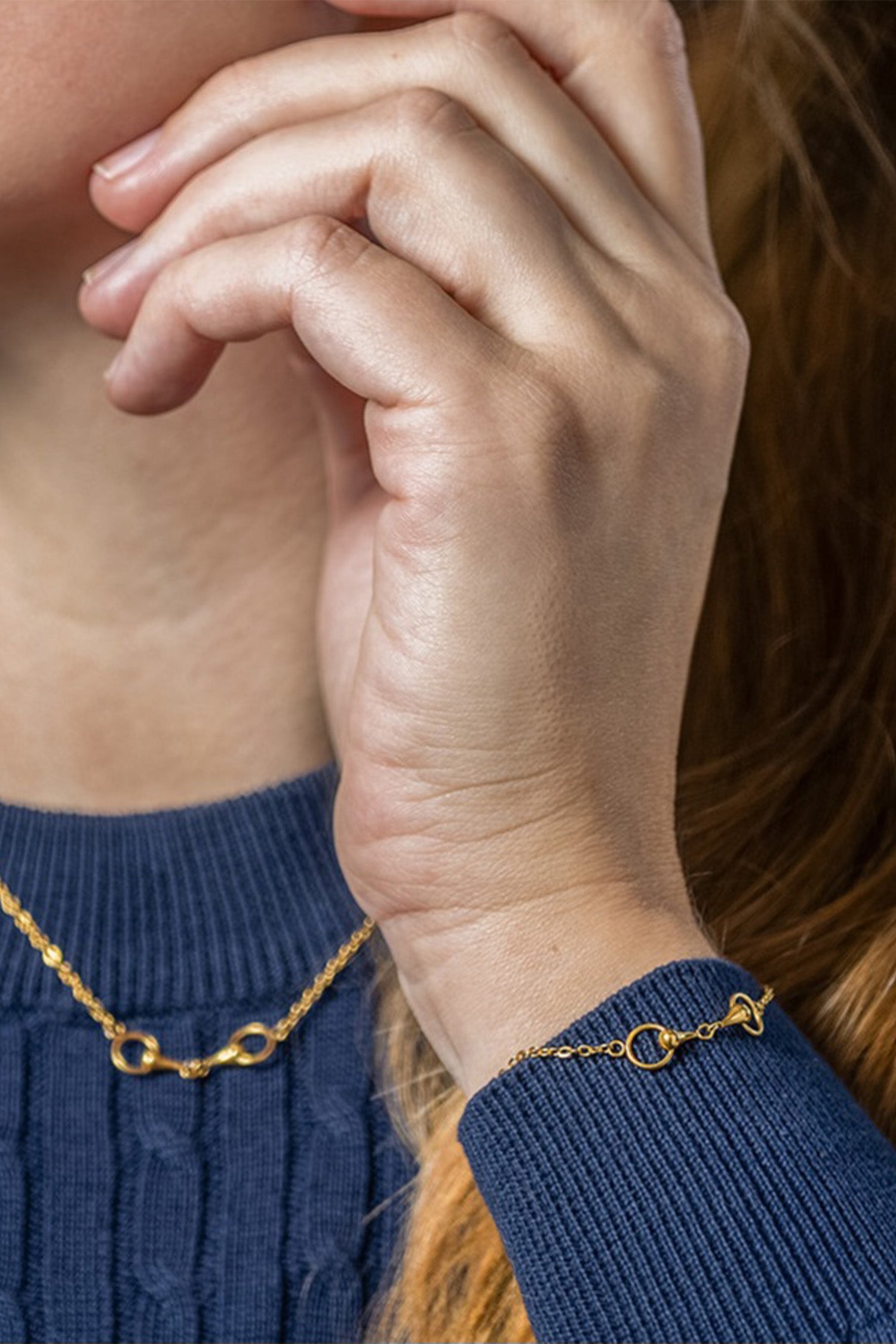 The thin and elegant chain is combined with a small, stylish bit in gold-plated stainless steel, providing high durability and long-lasting shine without maintenance. The jewelry is water-resistant and made to accompany you in everyday life.