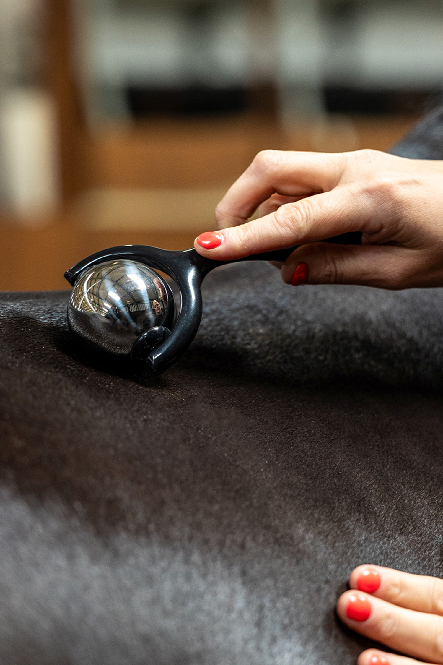 QHP massage roller for horses is a versatile grooming tool that helps you improve blood circulation, release tension, and stimulate the muscles after work or training. The ergonomic design makes it easy to use over the back, neck, loin, and hindquarters, making it a valued addition to your grooming routine.