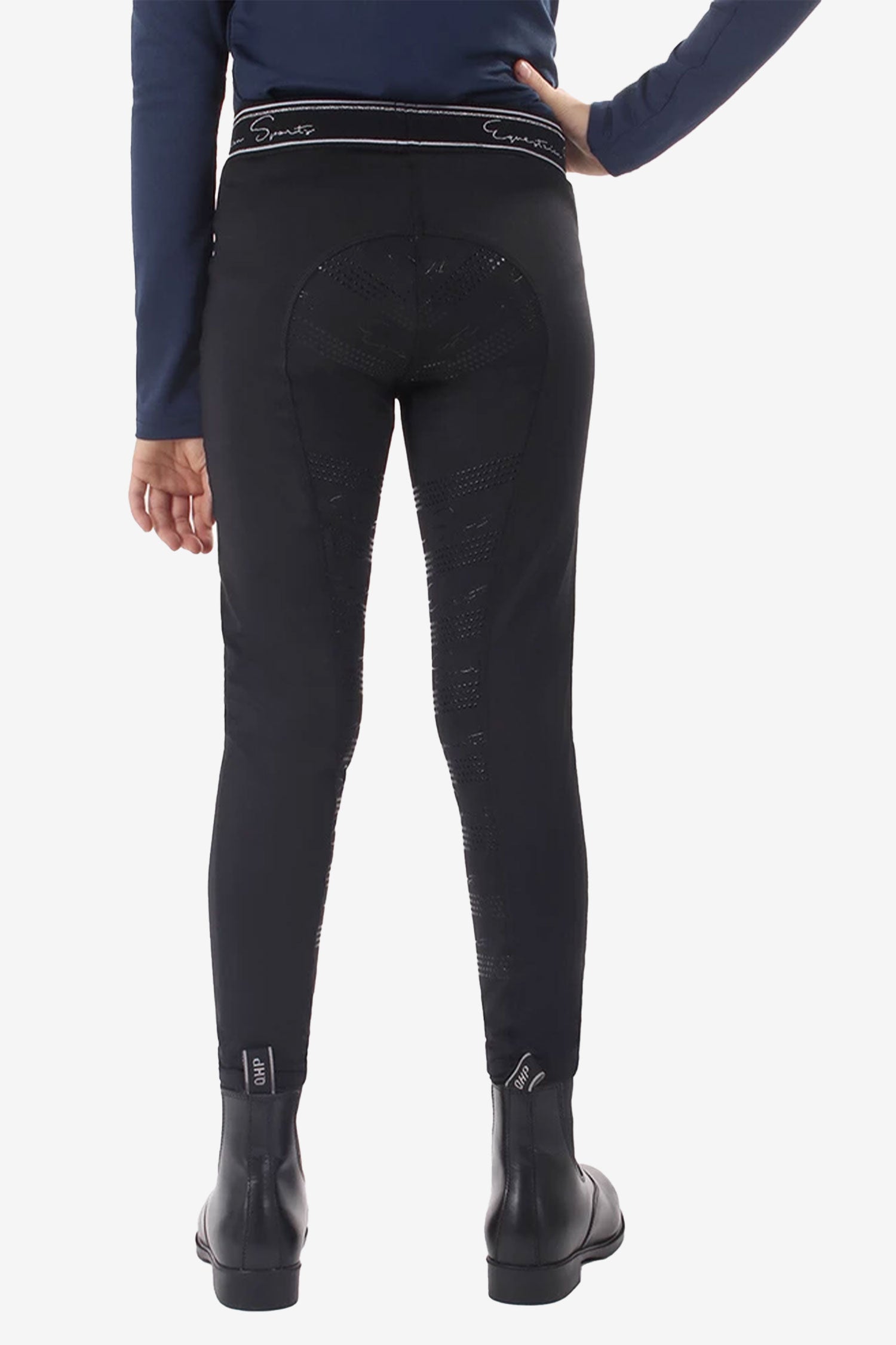 Riding tights that are perfect for young riders seeking comfort, style, and functionality in the stable and while riding. These riding tights are made from a soft and elastic 4-way stretch material that provides optimal freedom of movement and a comfortable fit. The medium-high waistband is elastic to ensure a good fit and high comfort.