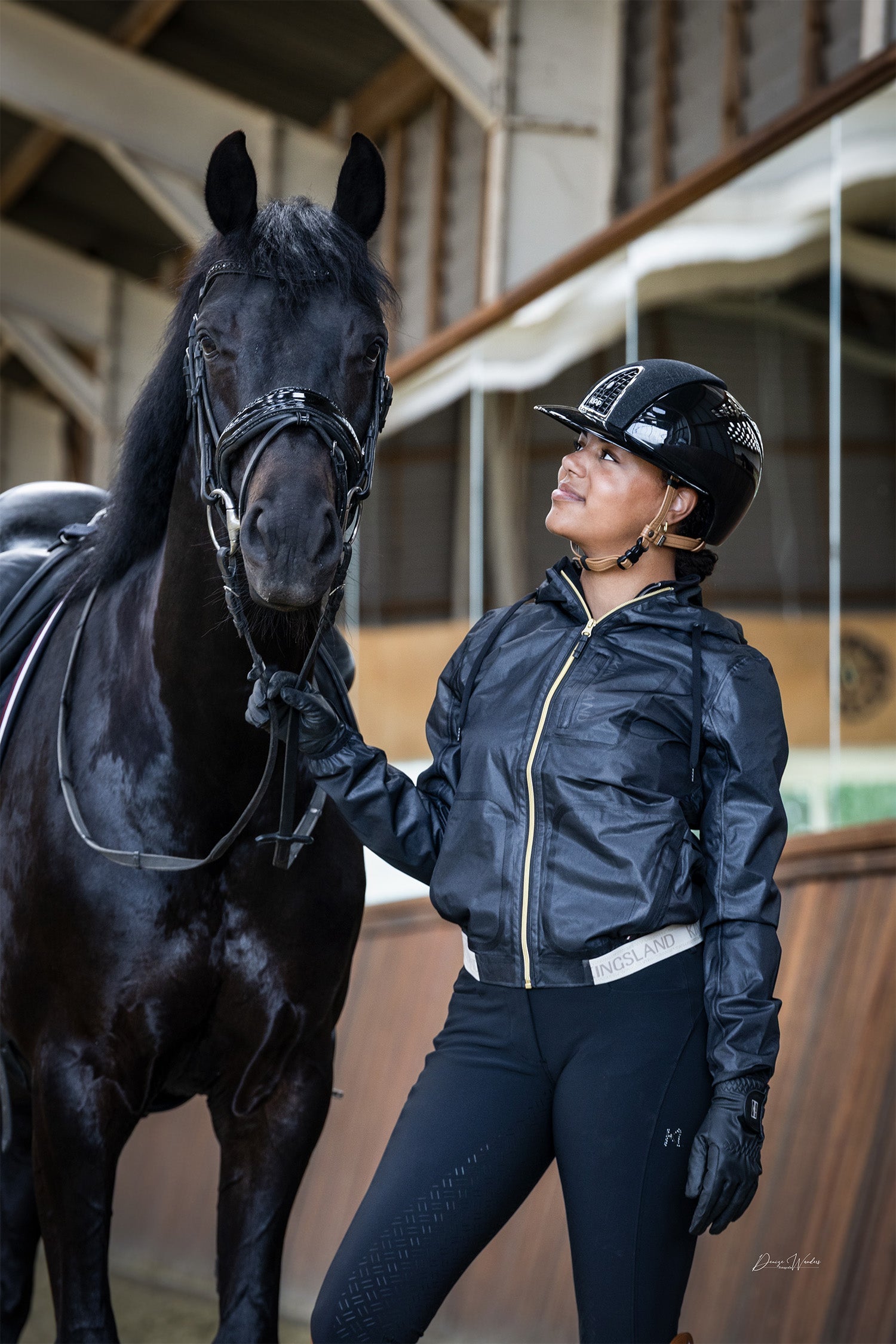 The A-shaped design creates a perfect silhouette, ideal for riders with a narrow upper body and wider hips, offering a tailored fit. The breeches are reinforced with a Tanatex® anti-dust and water-repellent treatment for extra protection and a hassle-free ride.