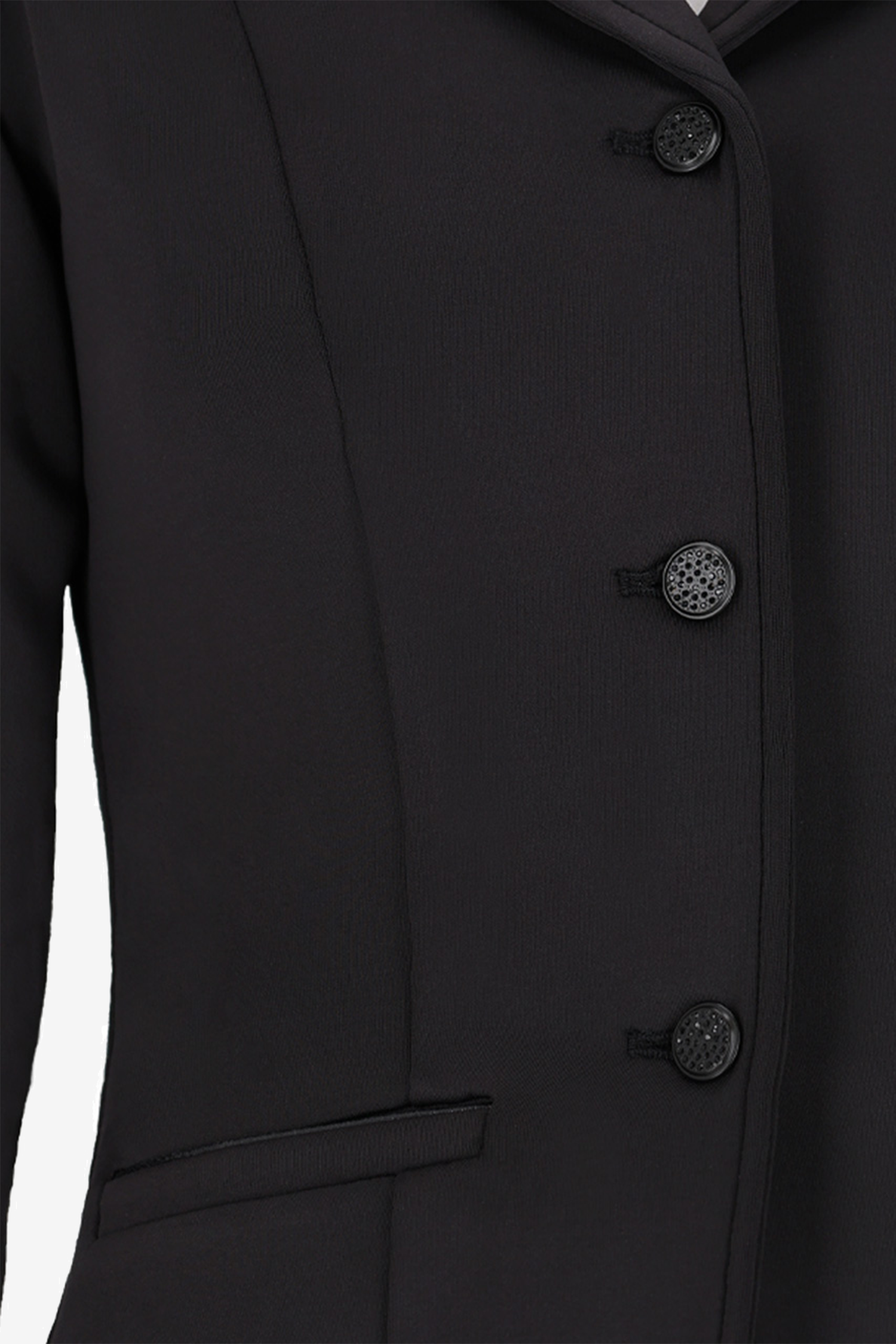 The flexible fabric adapts to the body's movements and makes it easy to sit correctly in the saddle. The show jacket has a good fit for juniors and is designed to offer both comfort and a stylish look at various types of events.