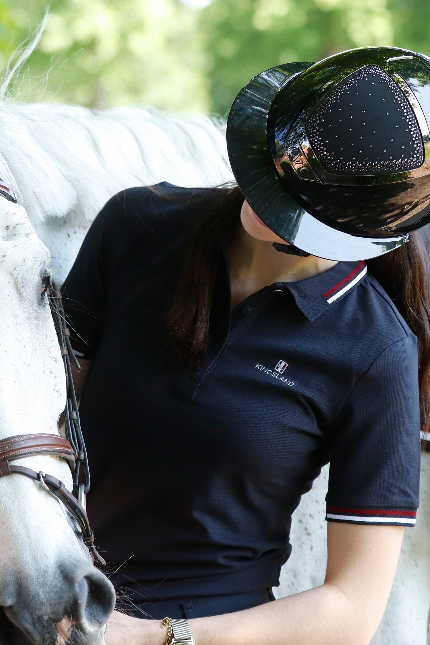The soft, flexible piqué material feels comfortable against the skin and works just as well under a riding jacket as on its own on warm days. The button placket at the front and a neat collar give a tidy impression, while the discreet Kingsland detailing makes the shirt just as suitable with breeches as with jeans or shorts.