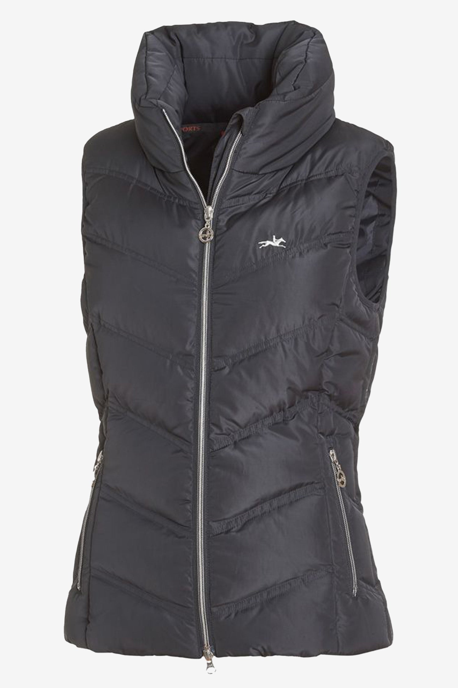 - Elegant stand-up collar with sparkling horse logo in rhinestones