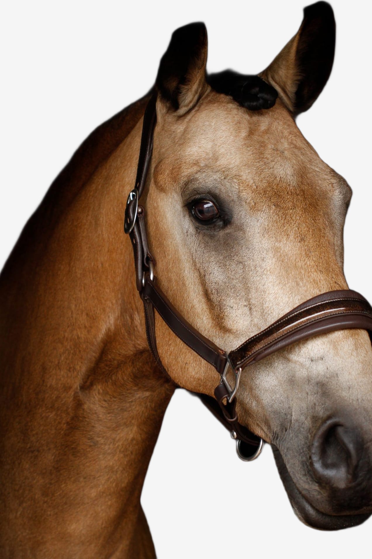 Adjustable from both sides over the neck and adjustable around the noseband.