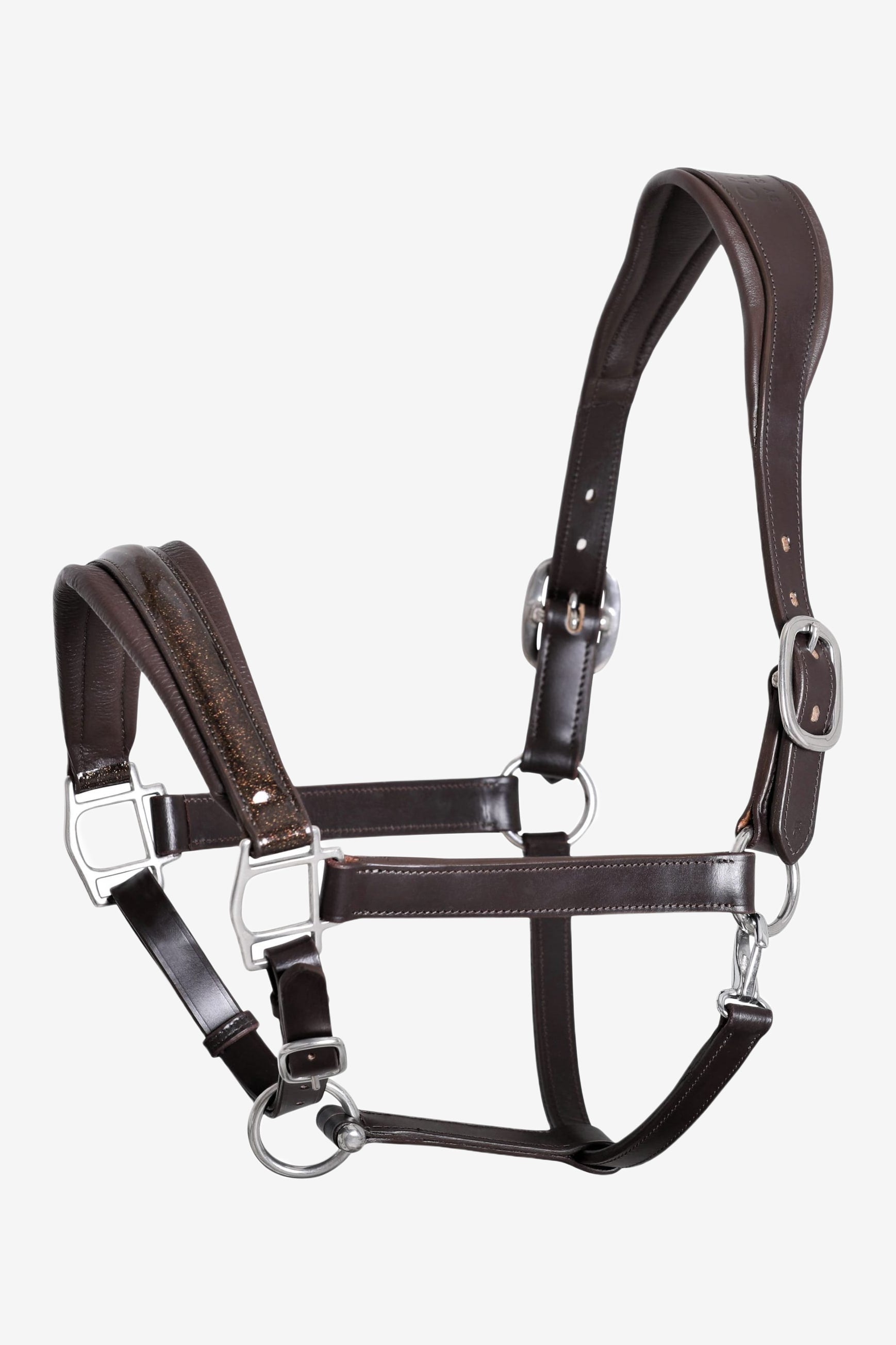 An elegant and stylish leather halter with lacquered glitter on the noseband that enhances the look a little extra!