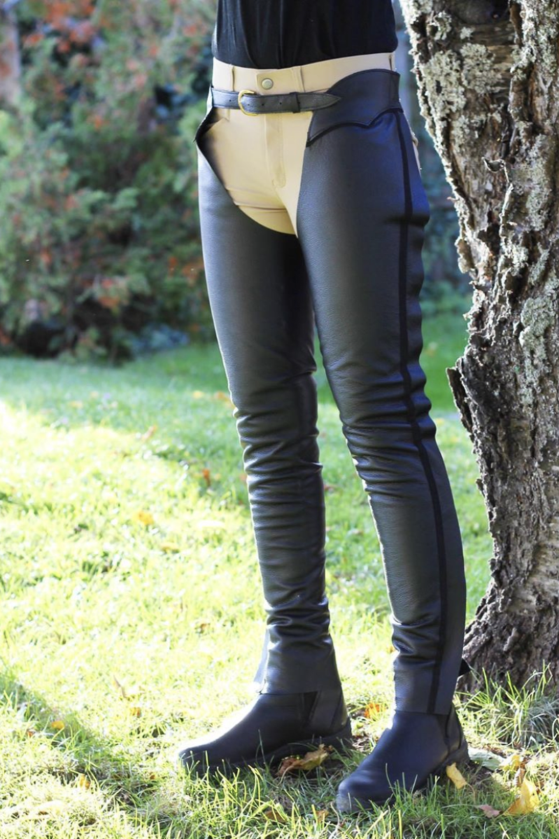 Full-length leather chaps in soft leather from Tib Horse. Leather piping on the outside that conceals the zipper. Tight fit with two adjustable buckles at the waist for a good fit. Durable and long-lasting with YKK zipper. Comfortable to ride in and easy to clean.