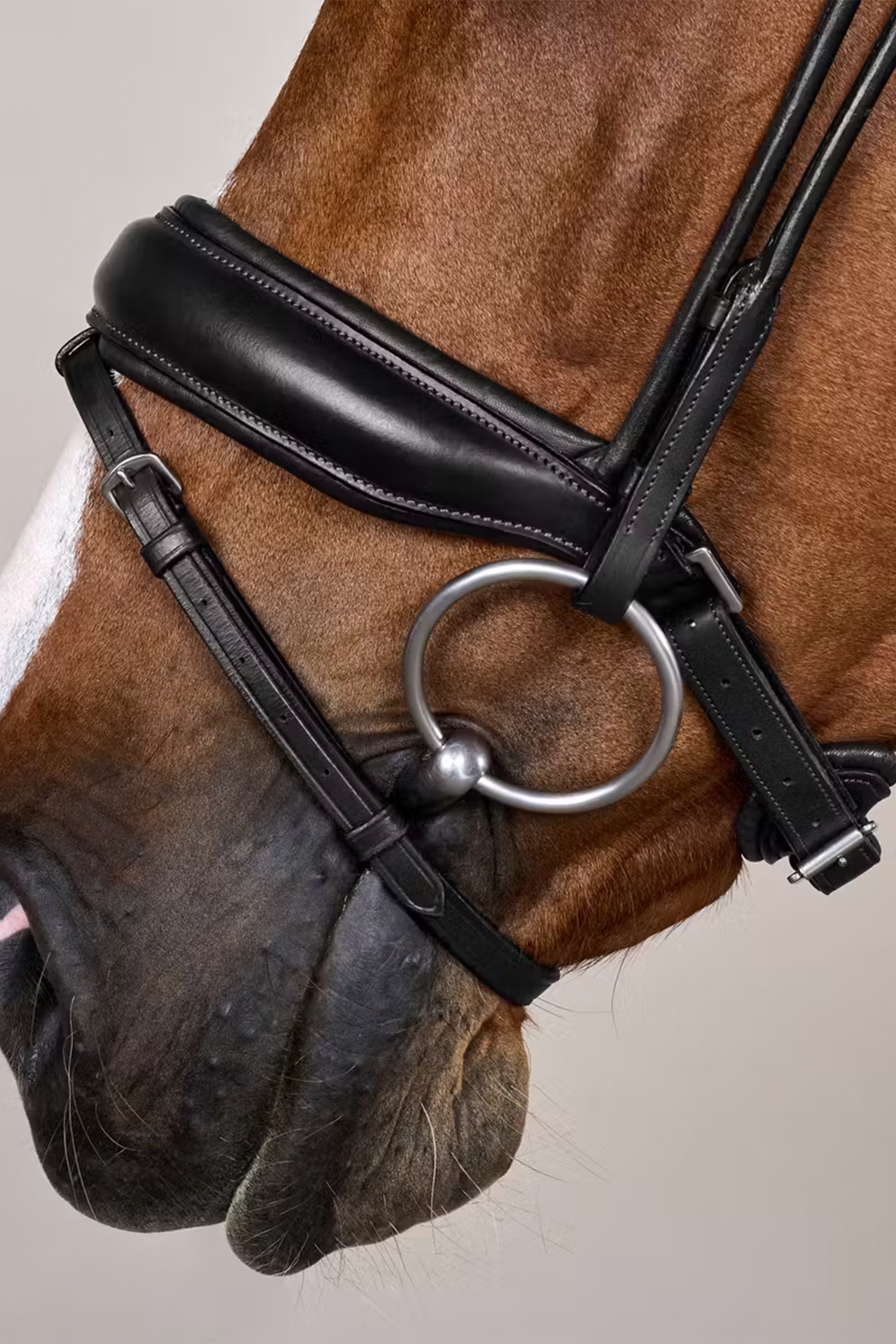This bridle is perfect for dressage riders who want to combine comfort with high-class design. The wide noseband provides extra stability at the bit, making it especially suitable for horses that require clear contact or more support. Ideal for both the competition arena and daily dressage training, where elegance and function go hand in hand.