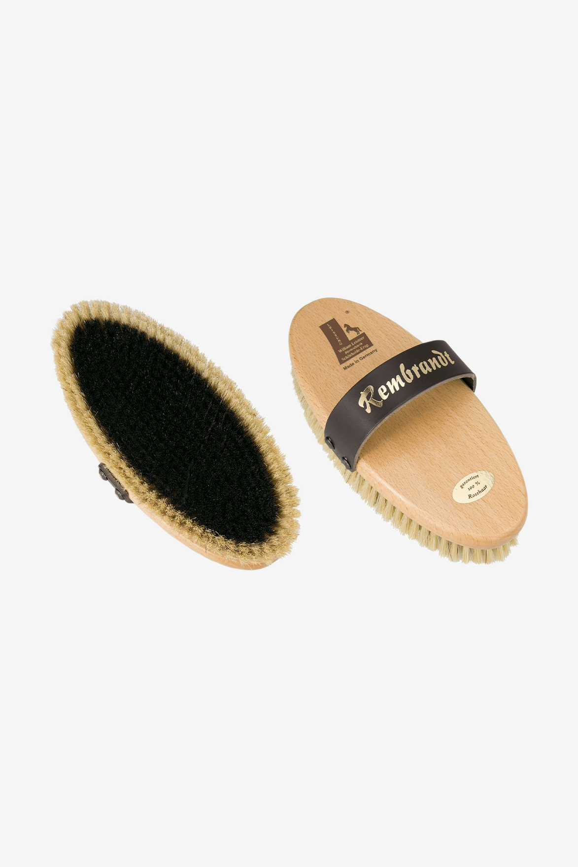 The perfect grooming brush, made of genuine horsehair. This model is in medium-soft hardness. Combines excellent brushing and a pleasant massage experience for your horse. Lighter dirt is easily brushed away with the help of the best quality horsehair in the middle of the brush and two higher outer layers of pig bristles that remove the last dust while leaving a fine shine.