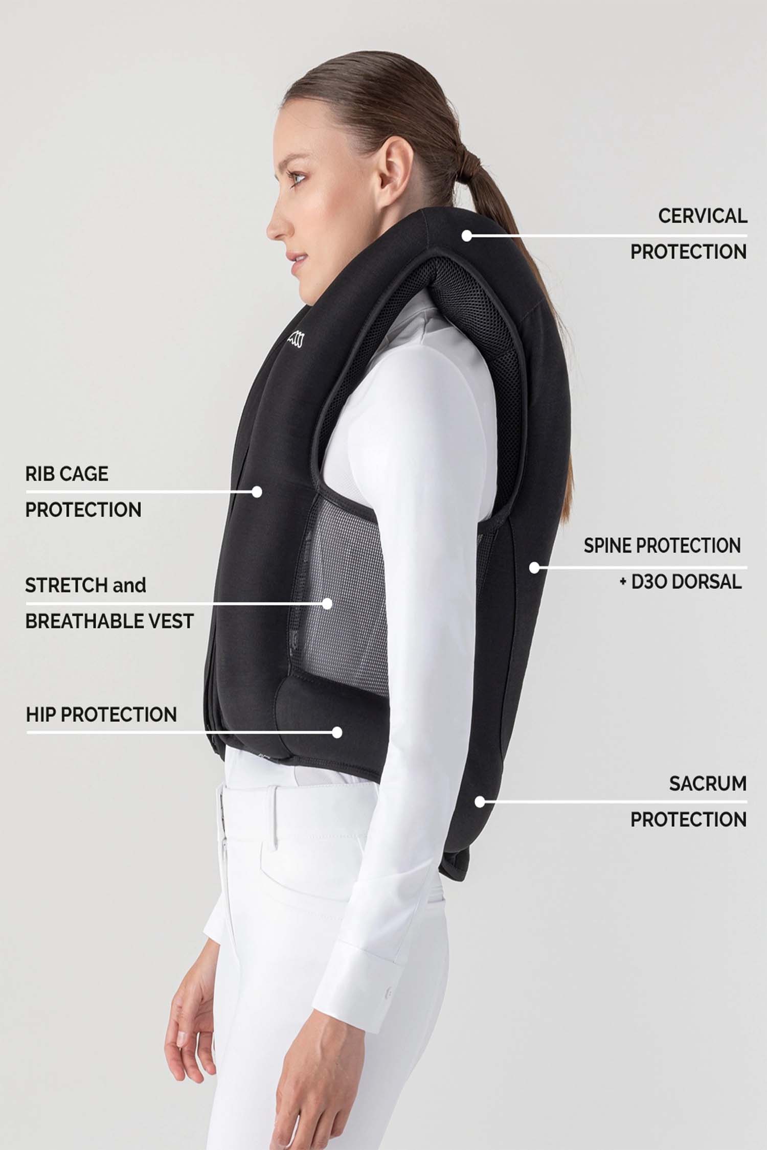• Ergonomic airbag that can be worn under all types of competition jackets with at least 15% stretch.