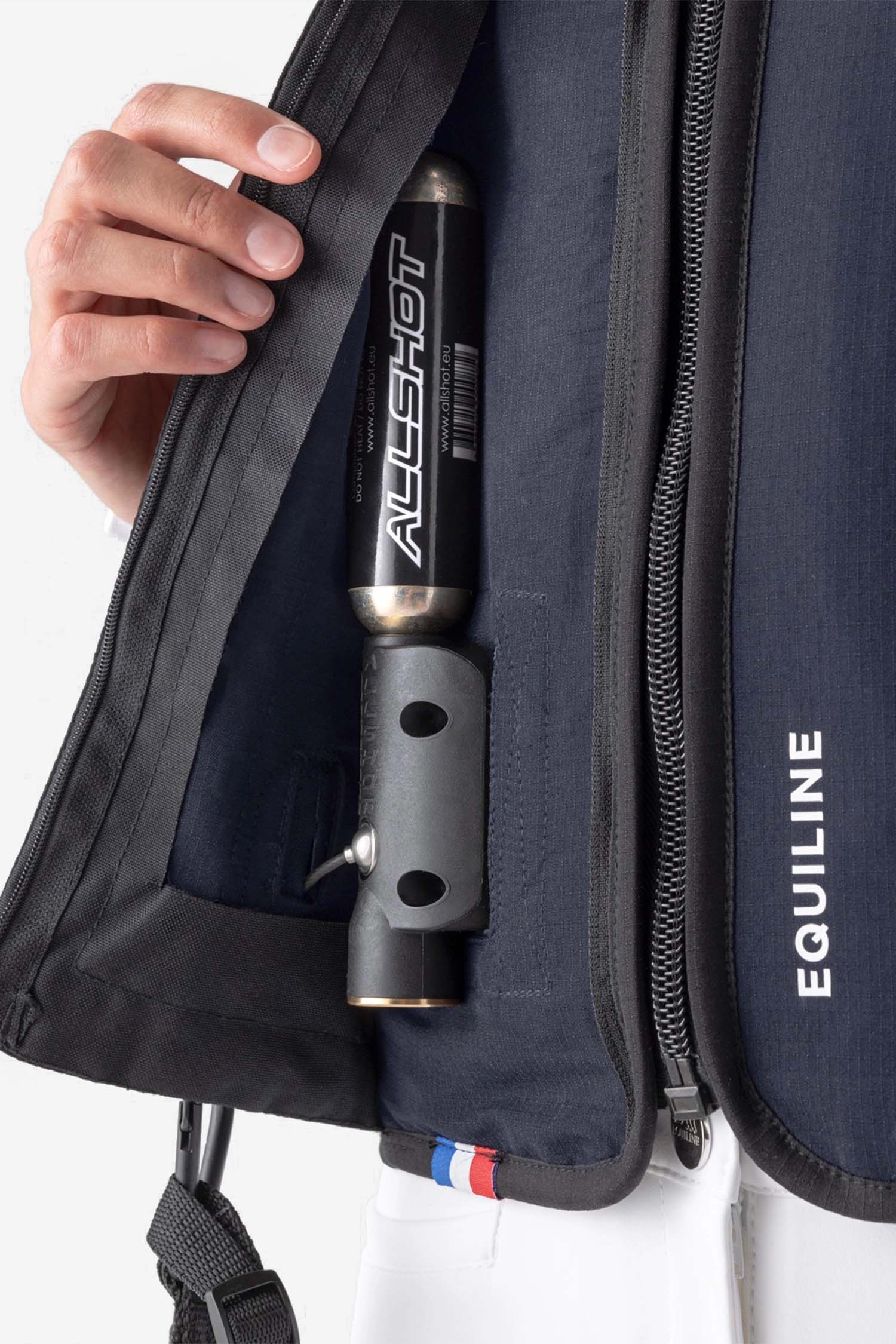 BELAIR is a stretchy airbag with a zipper that fits close to the body and features a D30 back protector. BELAIR can be worn both under and over the competition jacket if the instructions in the safety manual are followed.