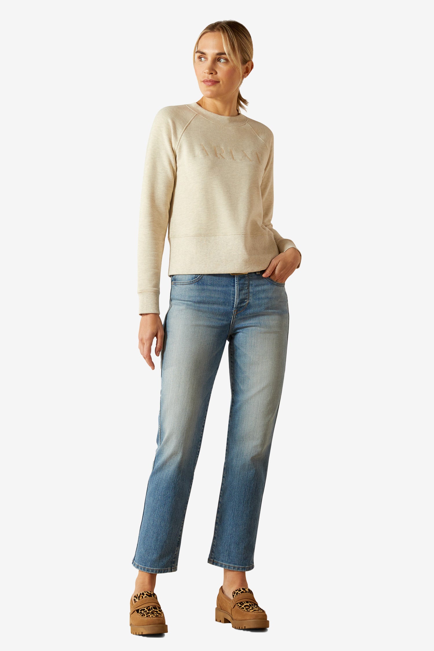 When the weather gets cooler, the Ariat Martine Sweatshirt is the perfect choice. Made from a soft organic cotton blend with recycled polyester, it combines sustainability, comfort, and modern design. The slightly shorter fit gives a trendy, retro-inspired look that makes it just as stylish in the stable as during your free time.