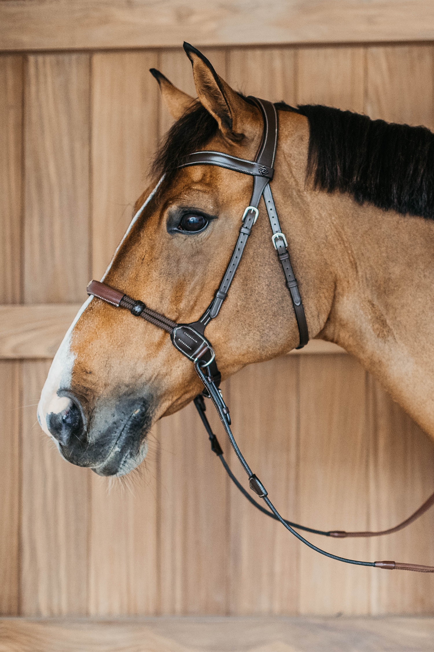 The innovative noseband system provides precision in communication between horse and rider, while always focusing on comfort. Two knots on the noseband enhance the clarity of the aids, giving you both control and responsiveness without using a bit.