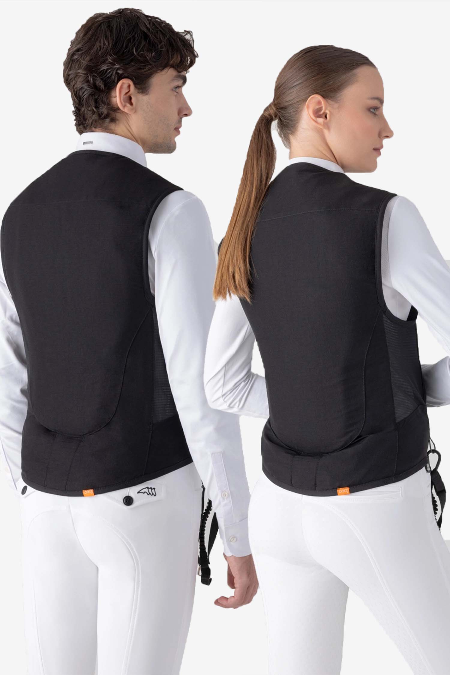 BELAIR is a stretchy airbag with a zipper that fits close to the body and features a D30 back protector. BELAIR can be worn both under and over the competition jacket if the instructions in the safety manual are followed.
