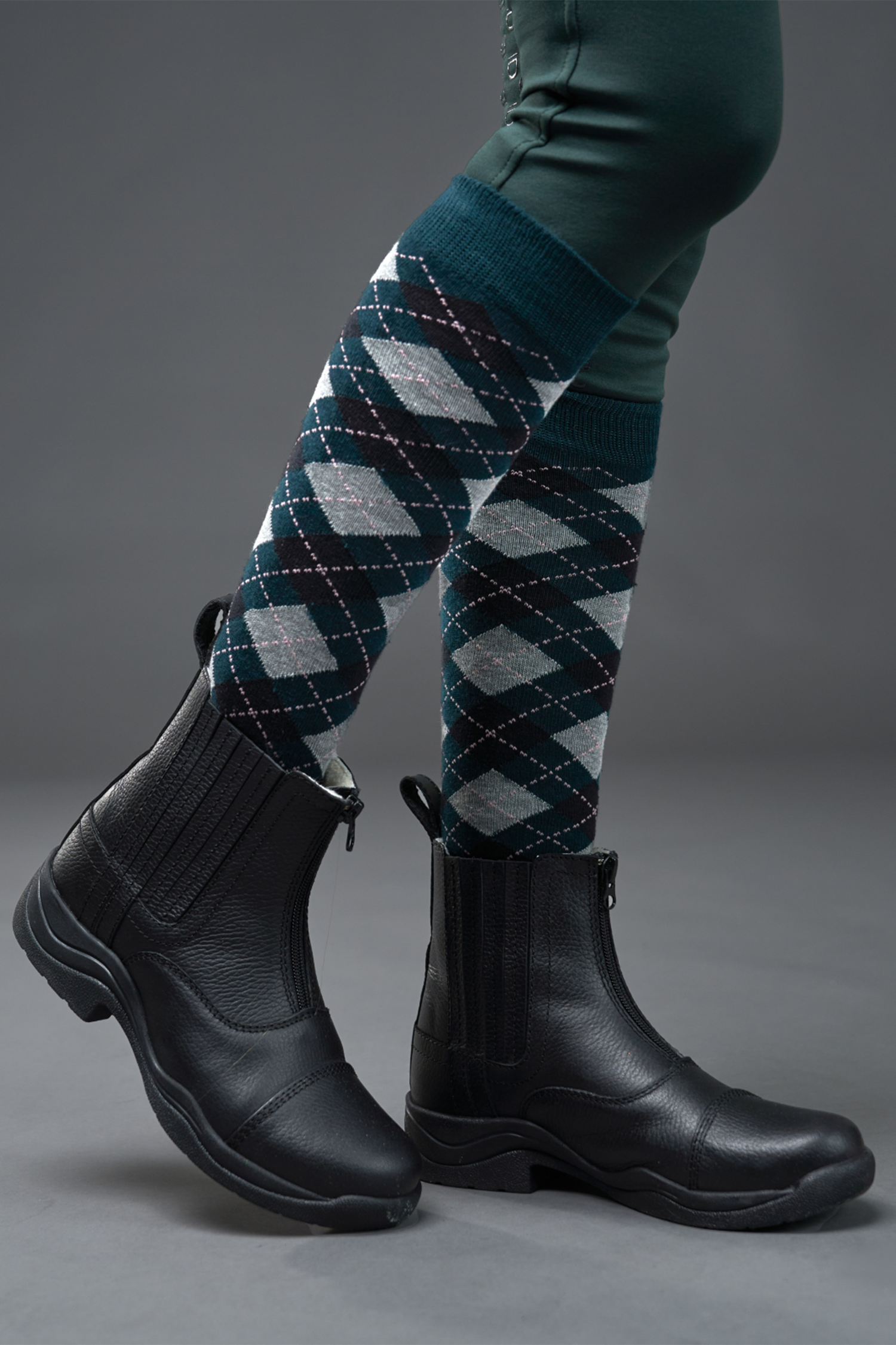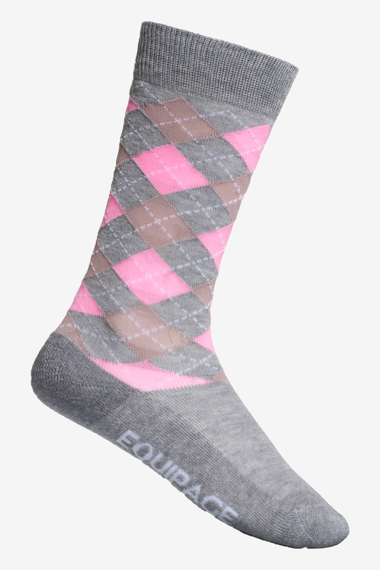 Traditional socks from Equipage. Lovely Scottish Argyle pattern motif together with a glittery lurex knit running through the entire pattern.