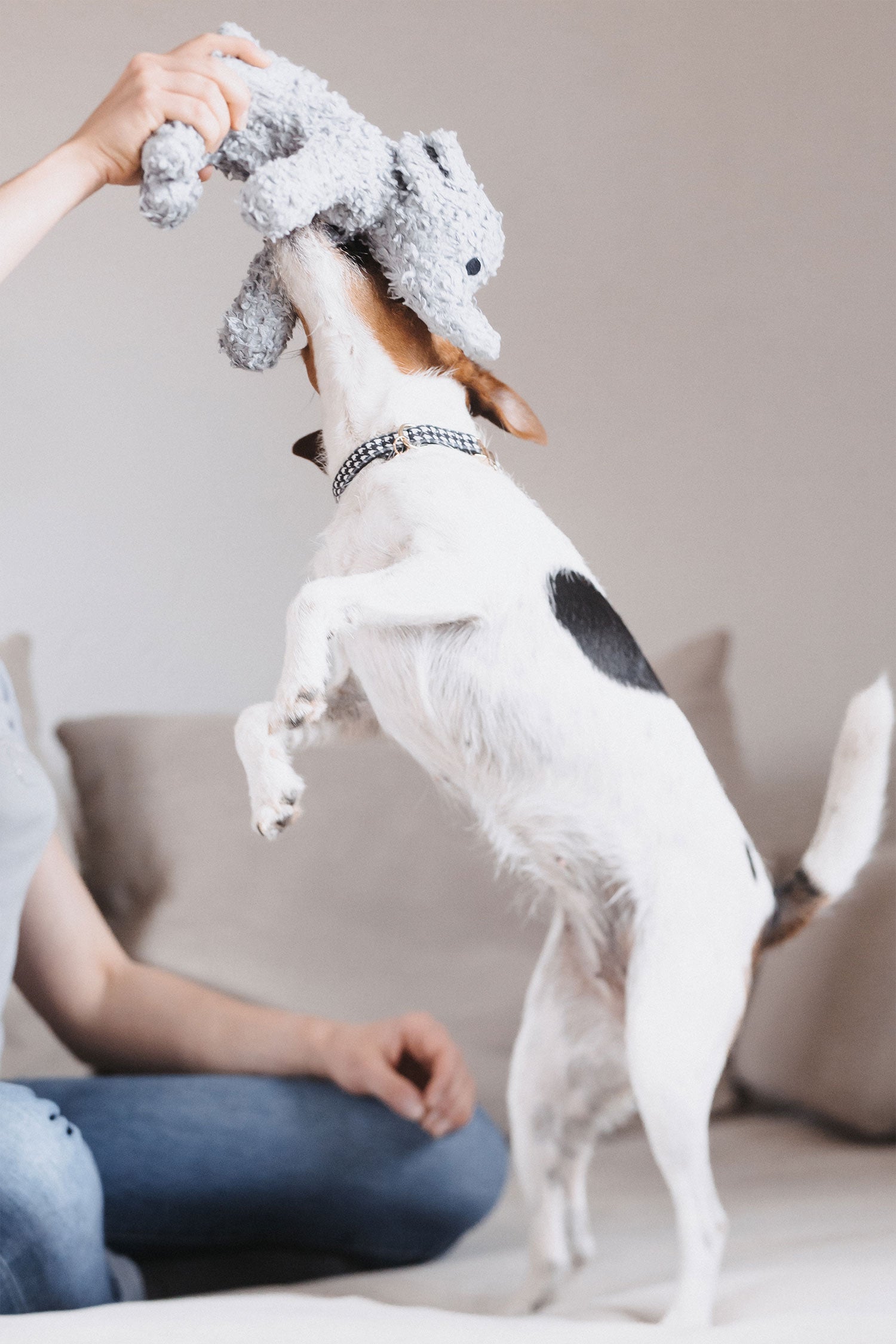 This dog toy is made of a soft natural cotton that is GOTS-certified, which means the fibers used are organic. The inside of this toy is filled with a plastic bottle that you can easily replace thanks to a strong Velcro closure.