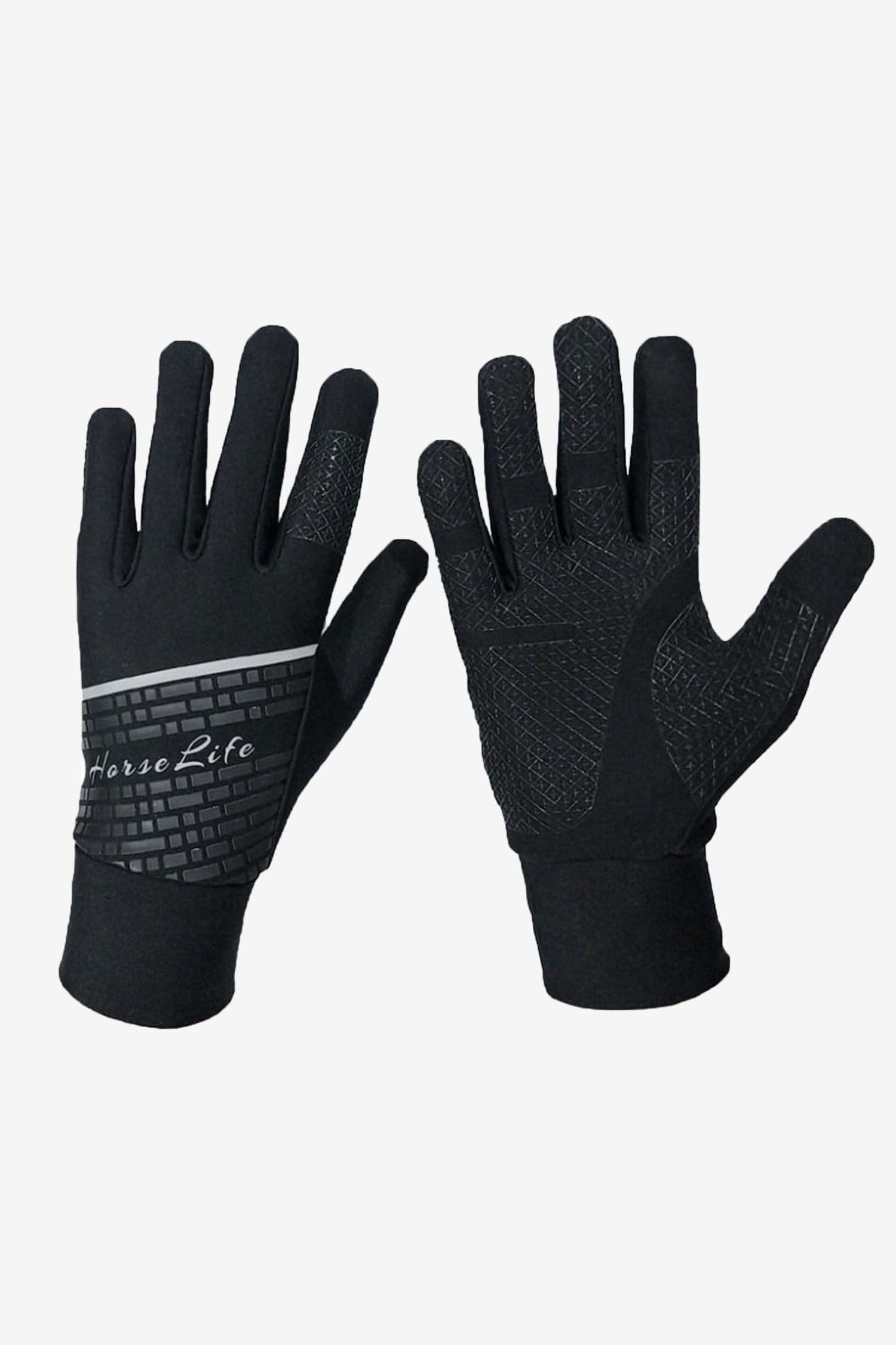 Silicone grip in the palm and protective silicone on the back of the glove to maintain its shape. Wide elastic around the wrist and fleece-lined interior.