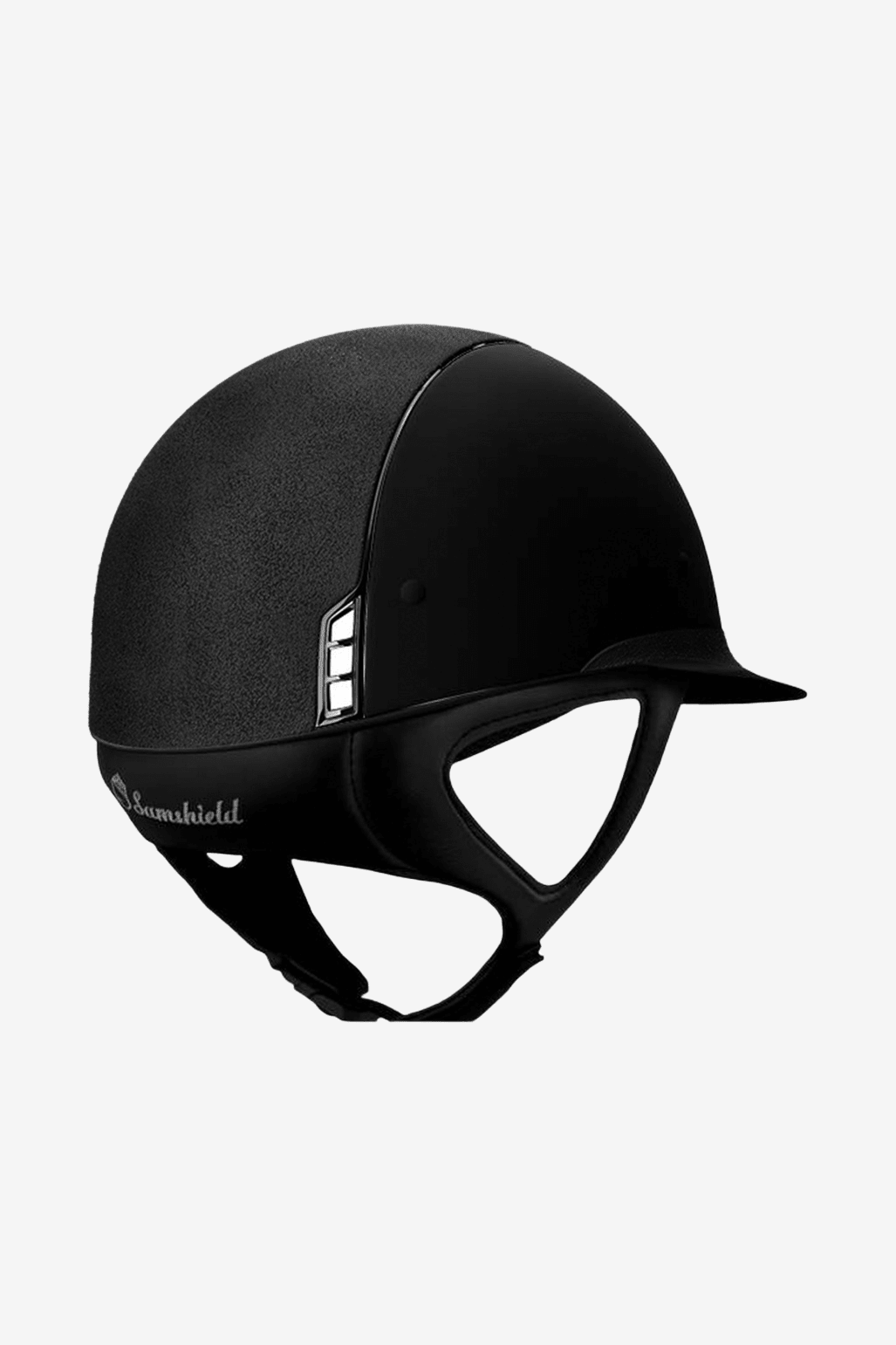Shadowmatt Miss Shield with Frontal Band + top in Black Alcantara and 5 black Swarovski & trim in black chrome.