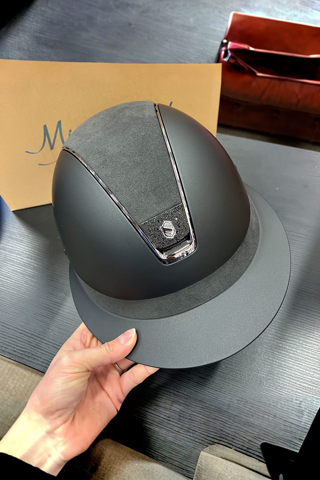All helmets can be ordered with a DRESSAGE STRAP to accommodate hairstyles. The helmet's neck protection is then moved up 2.5 cm. It costs nothing extra, but some models are special order items.