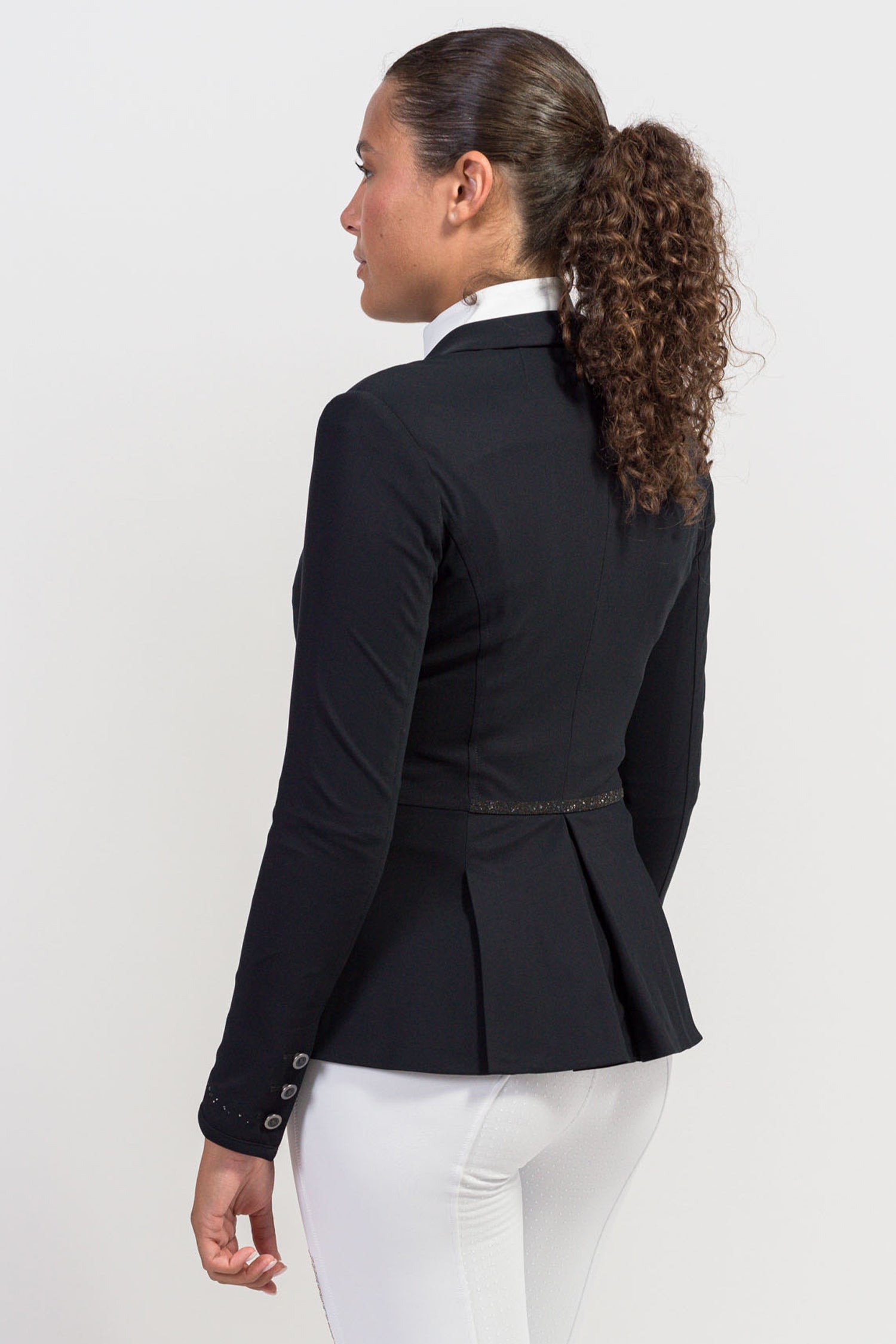 The jacket is designed for the rider's comfort and freedom of movement. The tailored model is sewn slightly shorter in the front, longer in the back, and gives a neat impression.
