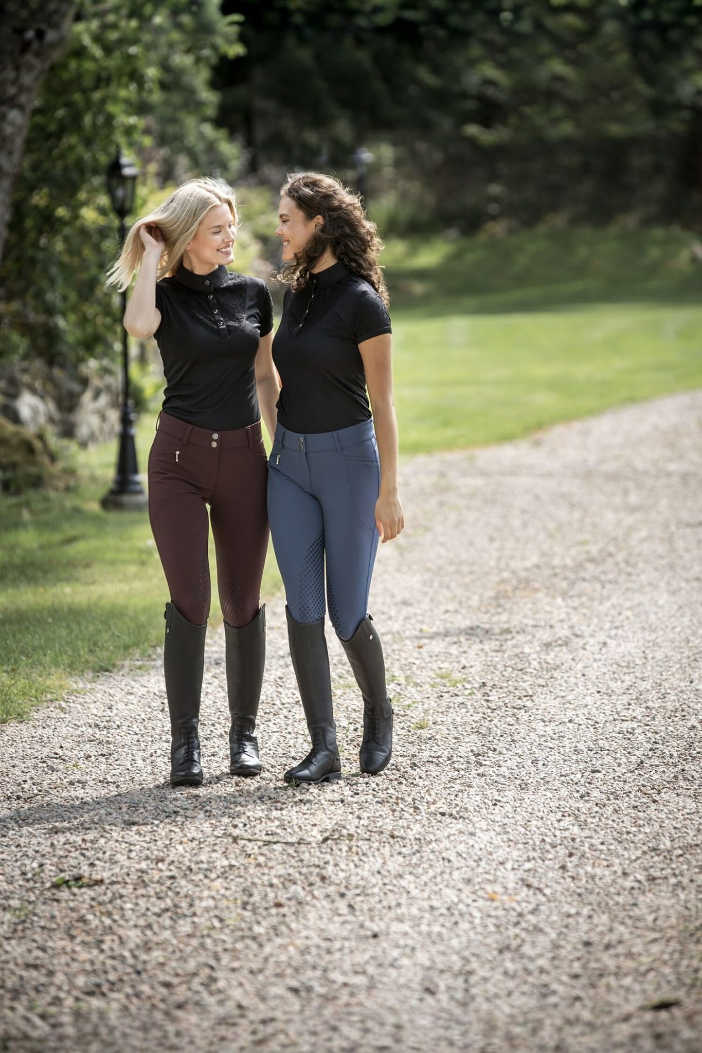 Stella from Horselife is made of Micro-X polyester/elastane. Micro-X polyester/elastane is a lightweight and functional material that provides you as a rider with freedom of movement and comfort. Stella has a regular high waist, is saddle-cut with a silicone inner side, two front pockets of which one has a zipper. Lycra leg endings. An incredibly comfortable and stylish pair of breeches that suits everyone.