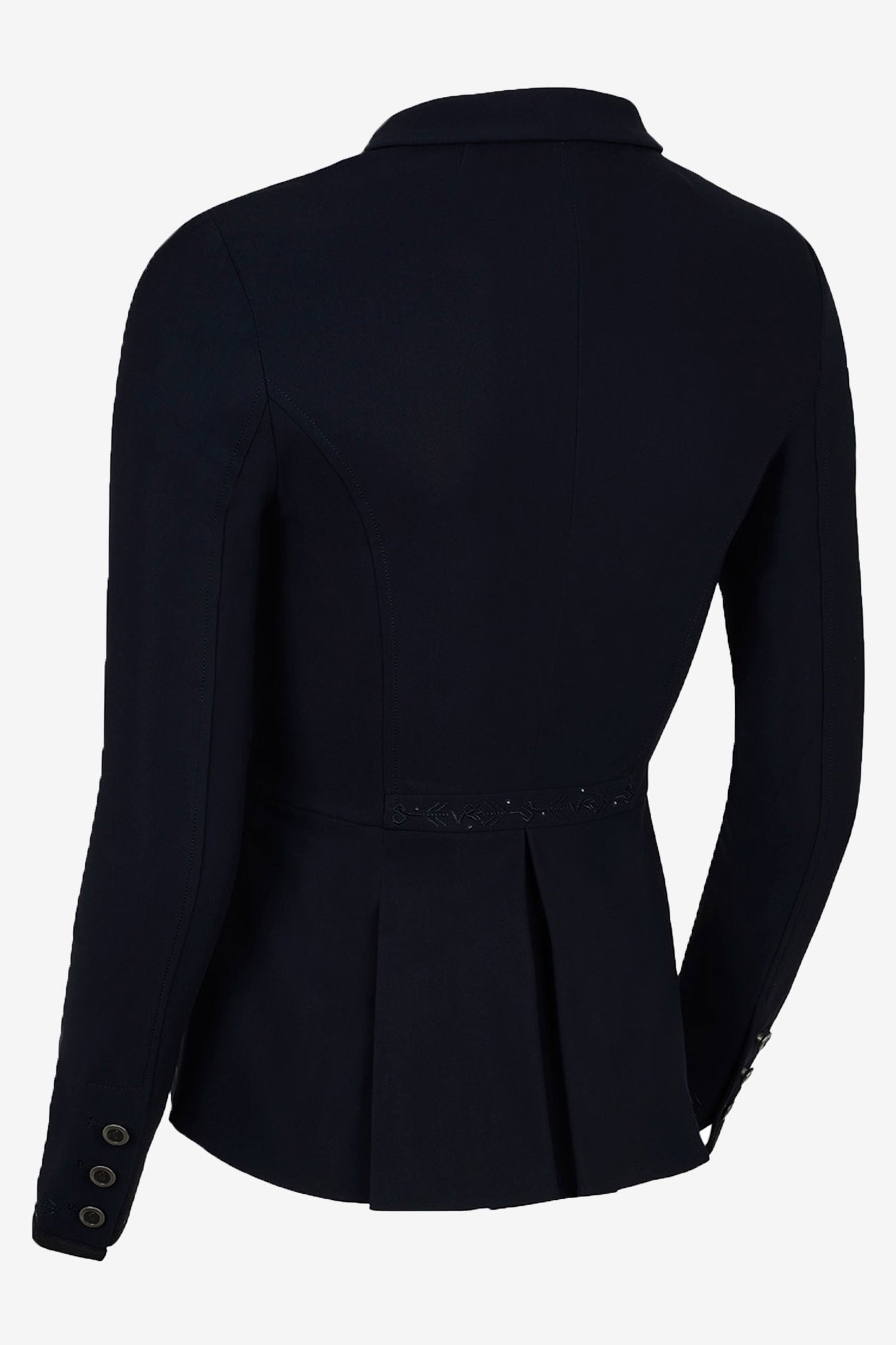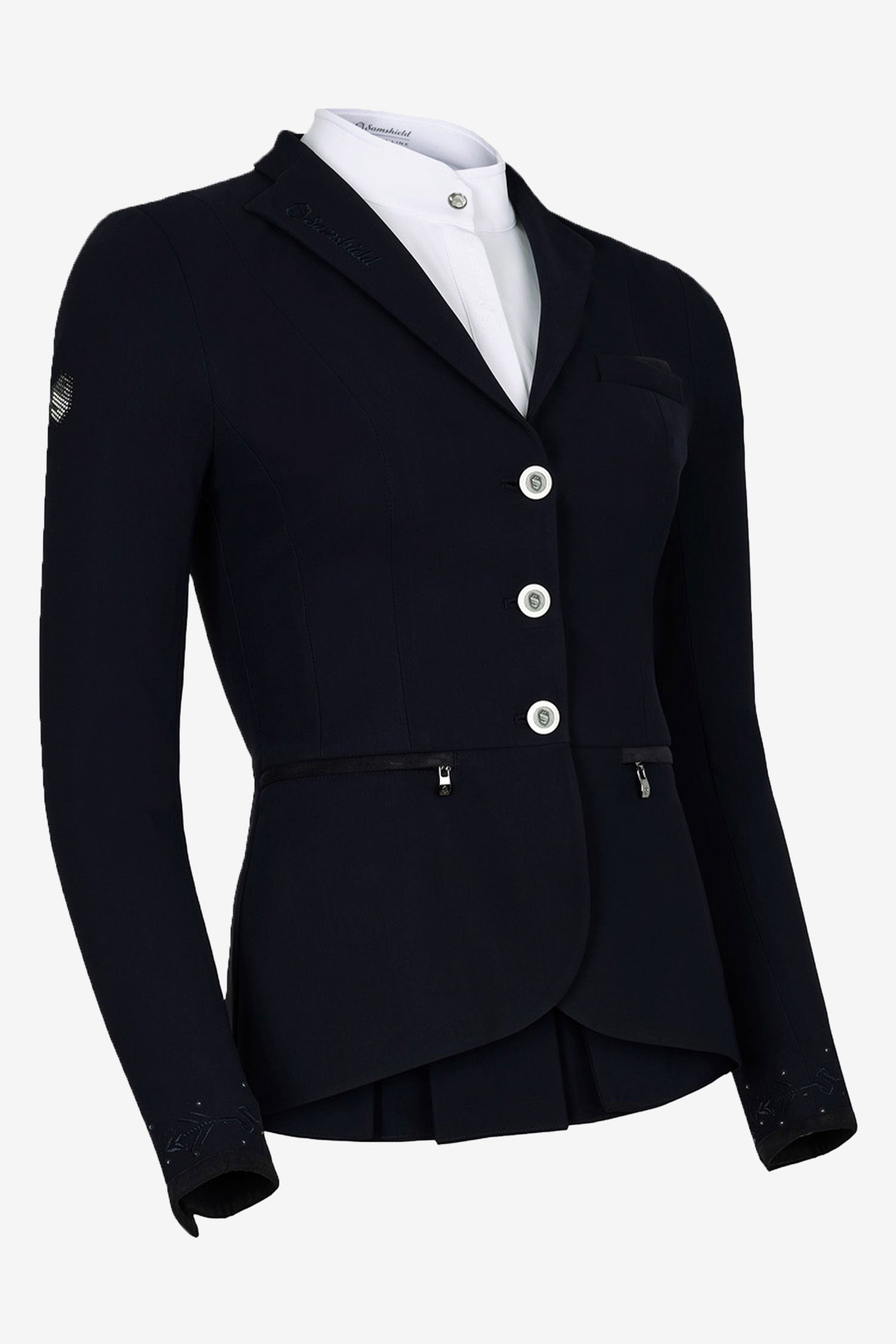 Stylish women's jacket with Samshield's logo embroidered on the collar. Closes with three buttons at the front. Also two pockets with zippers. At the back above the slit, there is a stylish band with a decorative pattern of Swarovski crystals. The same pattern is also found at the sleeve ends. Made in a material that is very quick-drying with high comfort. It is wrinkle-free and also blocks the sun's UV radiation. Can be washed at 30 degrees.