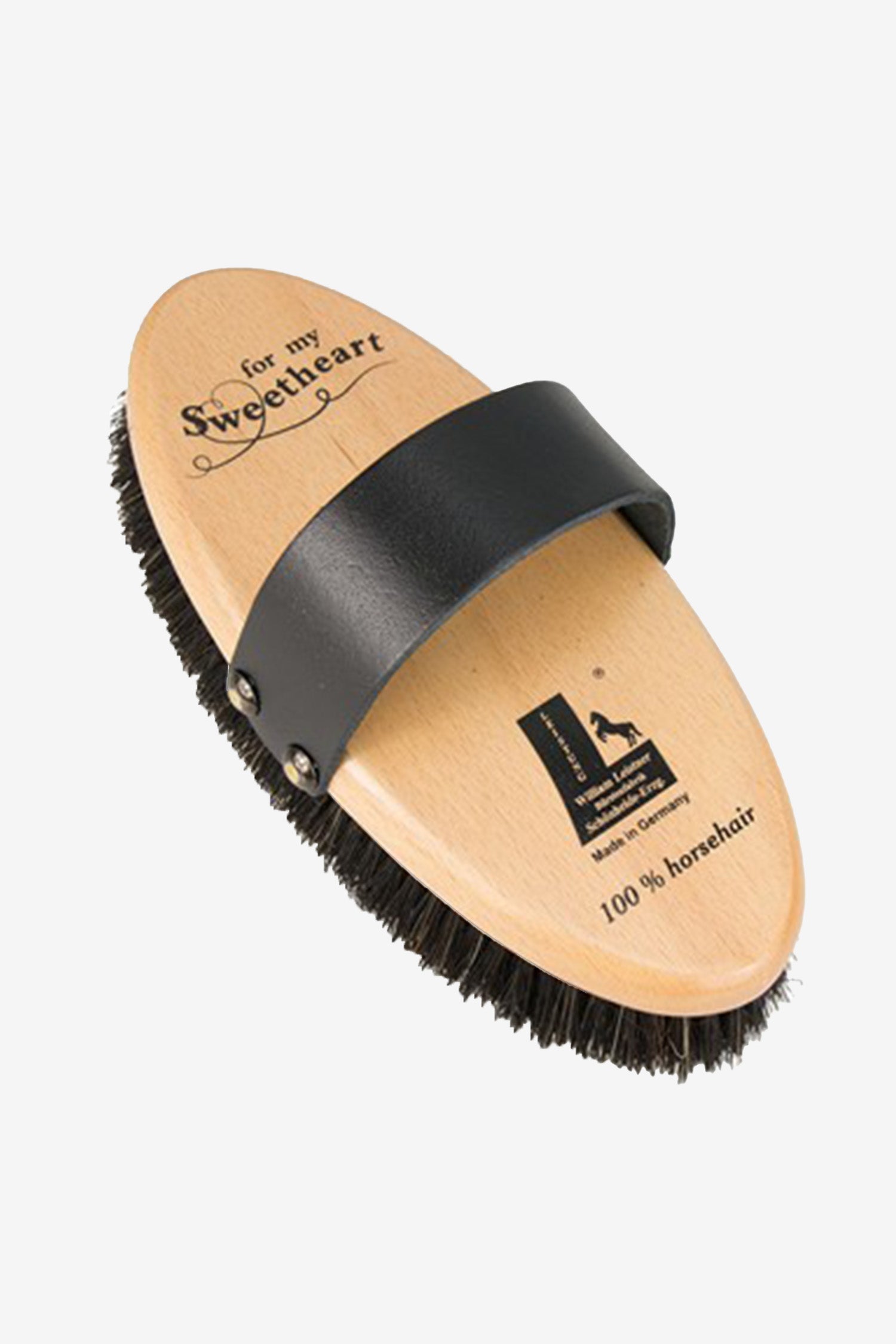 The densely packed horsehair with a charming heart motif in light pig bristles (Natural/Black) captures dirt deep down and leaves the coat with a beautiful, natural shine.