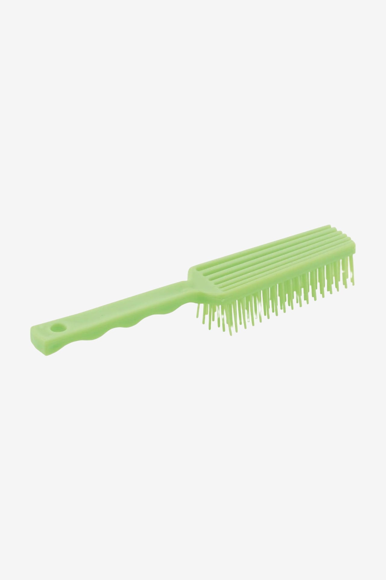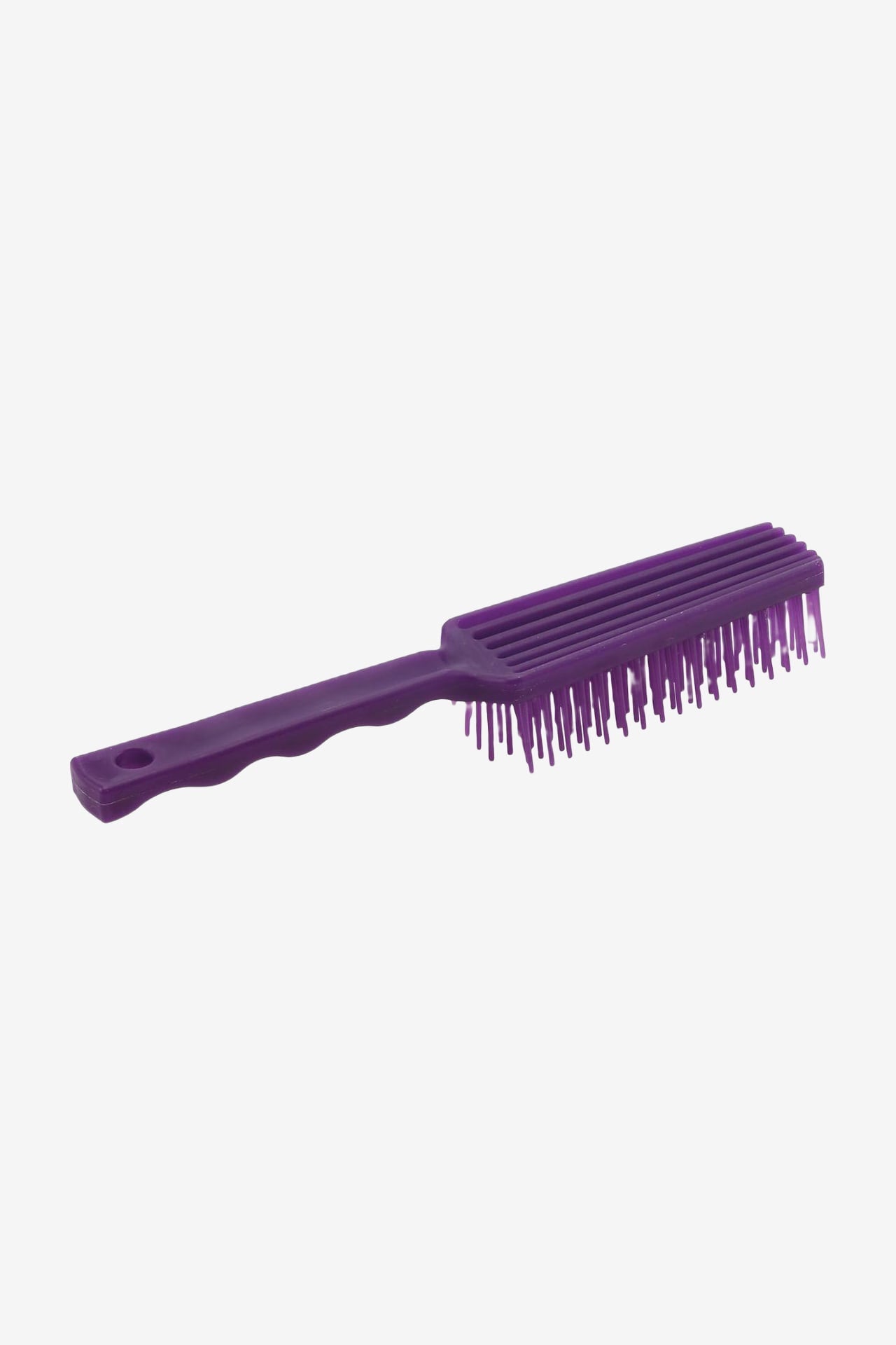 Brosse pour crinière et queue avec une poignée ergonomique et des picots arrondis.