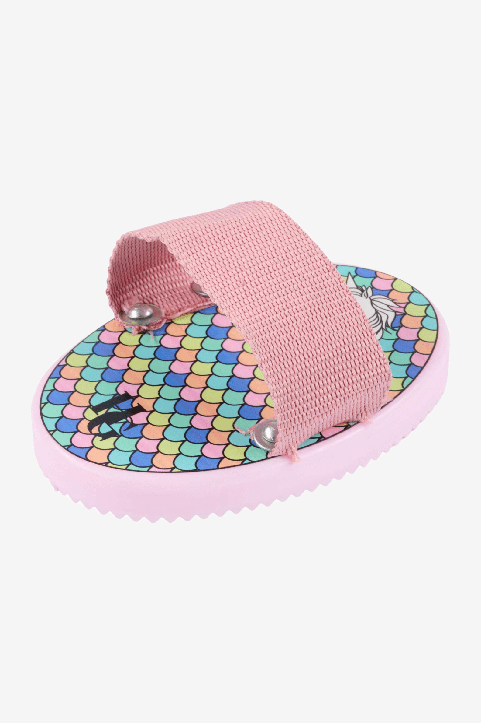 Cure-pony de Horse Guard. Joli cure-pony aux couleurs vives avec motif licorne et sangle assortie sur le dos de la main.