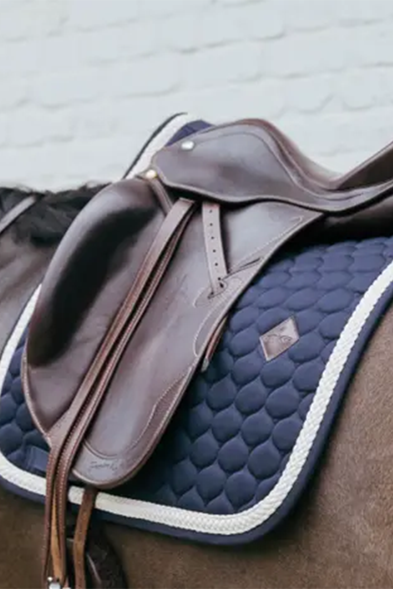 Conçu avec un motif matelassé raffiné et le passepoil tressé, il offre une allure classique et moderne à la fois. Convient aussi bien à la compétition qu'à l'entraînement. Un joli détail discret est le logo Kentucky sur une étiquette en cuir végan sur le côté gauche.